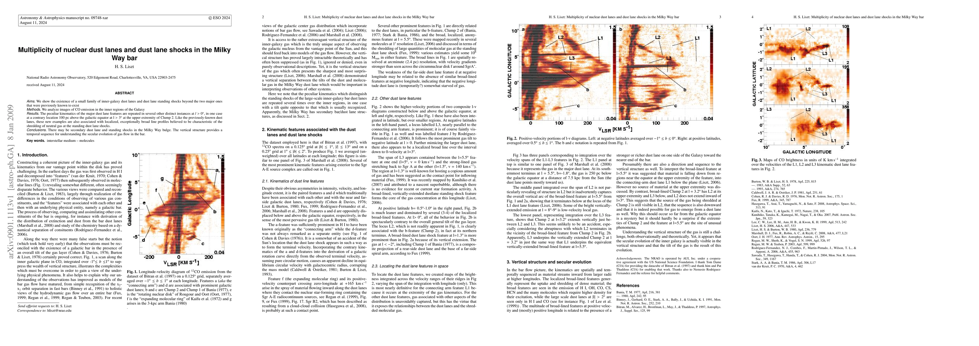 Aims: We show the existence of a small family of inner-galaxy dust lanes and dust lane standing shocks beyond the two major ones that were previously known to exist Methods: We analyze images of CO emission in the inner regions of the Galaxy Results: The peculiar kinematics of the major dust lane features are repeated in several other distinct instances at l > 0deg, in one case at a contrary location 100 pc above the galactic equator at l > 3degr at the upper extremity of Clump 2. Like the previously-known dust lanes, these new examples are alsoassociated with localized, exceptionally broad line profiles believed to be characteristic of the shredding of neutral gas at the standing dust lane shocks. Conclusions: There may be secondary dust lane and standing shocks in the Milky Way bulge. The vertical structure provides a temporal sequence for understanding the secular evolution of gas flow in the bar.