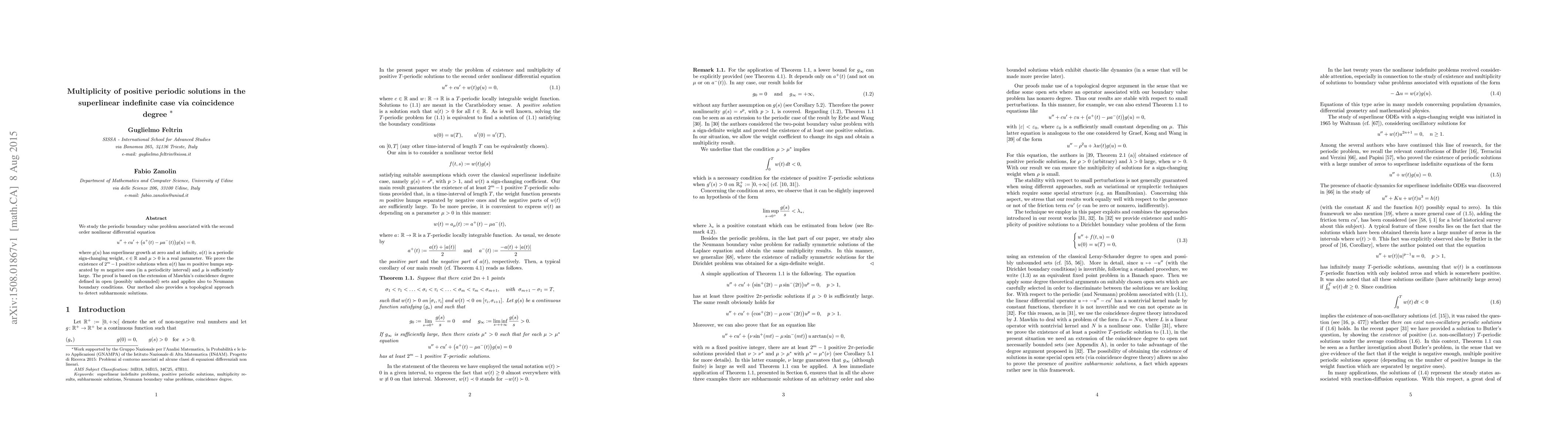 This paper investigates the existence of multiple positive periodic solutions for a second-order nonlinear differential equation with superlinear growth, using an extended version of Mawhin's coincidence degree. It proves the existence of $2^{m}-1$ positive solutions when the weight function has $m$ positive humps separated by $m$ negative ones, under certain conditions on the parameter $\mu$.