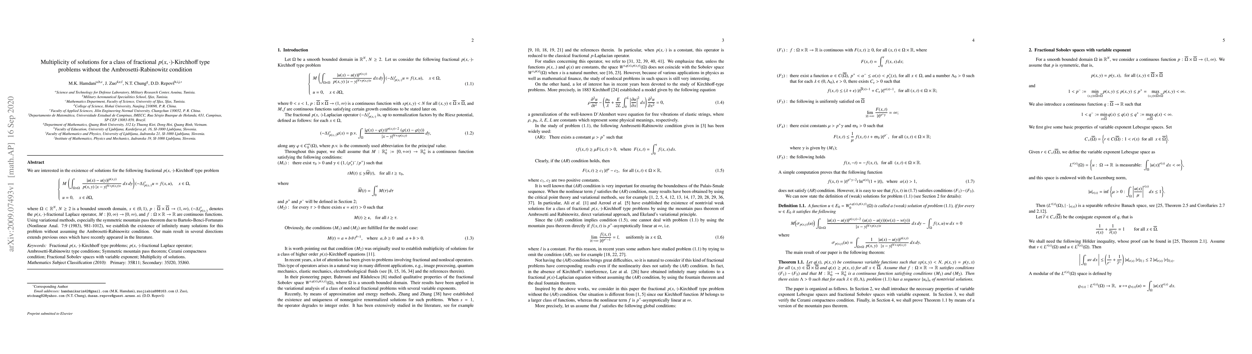 This paper explores the existence of multiple solutions for a fractional $p(x,\cdot)$-Kirchhoff type problem, employing variational methods without the Ambrosetti-Rabinowitz condition. The study establishes infinitely many solutions using the symmetric mountain pass theorem.