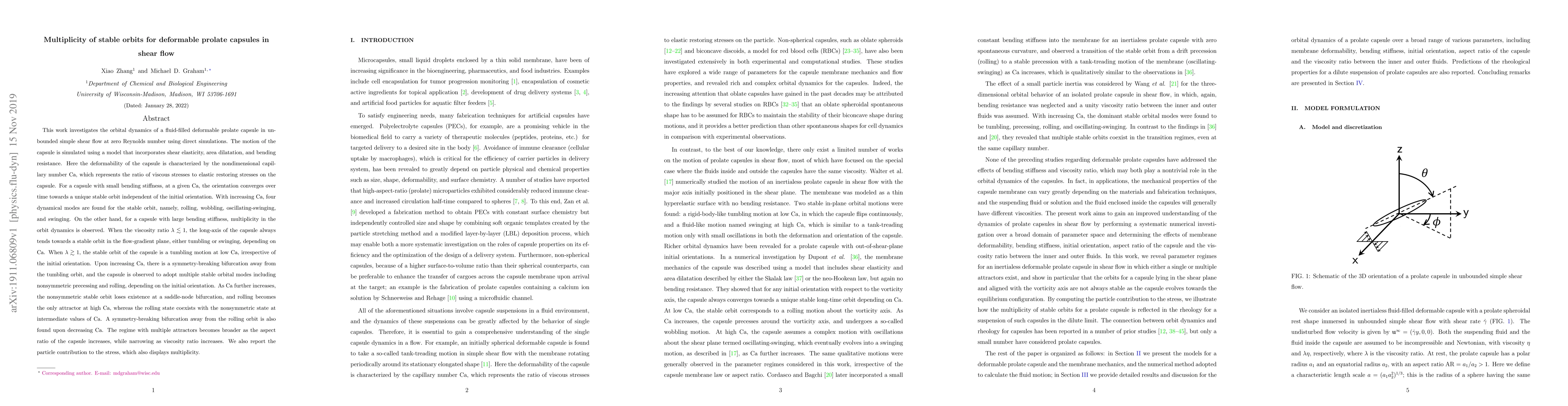 This study explores the orbital dynamics of deformable prolate capsules in shear flow, revealing multiple stable orbits influenced by the capsule's deformability and bending stiffness. At high deformability, stable orbits include rolling, wobbling, and swinging, while increased stiffness leads to tumbling and nonsymmetric precessing. The multiplicity of stable orbits is broader with higher capsule aspect ratios and narrower with higher viscosity ratios.