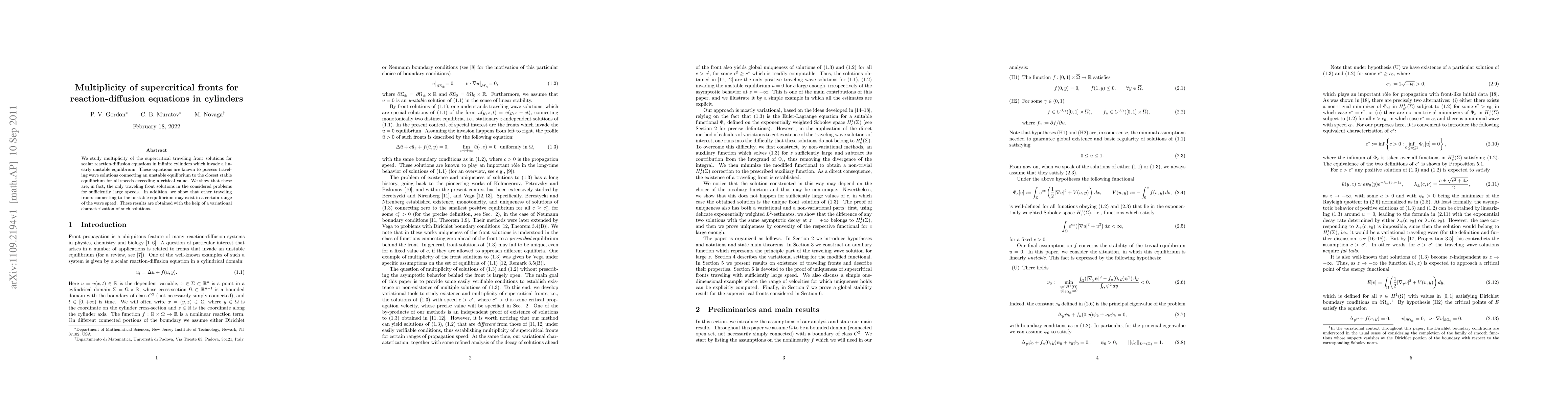 This paper investigates the existence of multiple supercritical traveling front solutions for reaction-diffusion equations in infinite cylinders, proving that only one type exists for sufficiently large speeds, while other fronts may exist within a specific speed range, using variational methods.