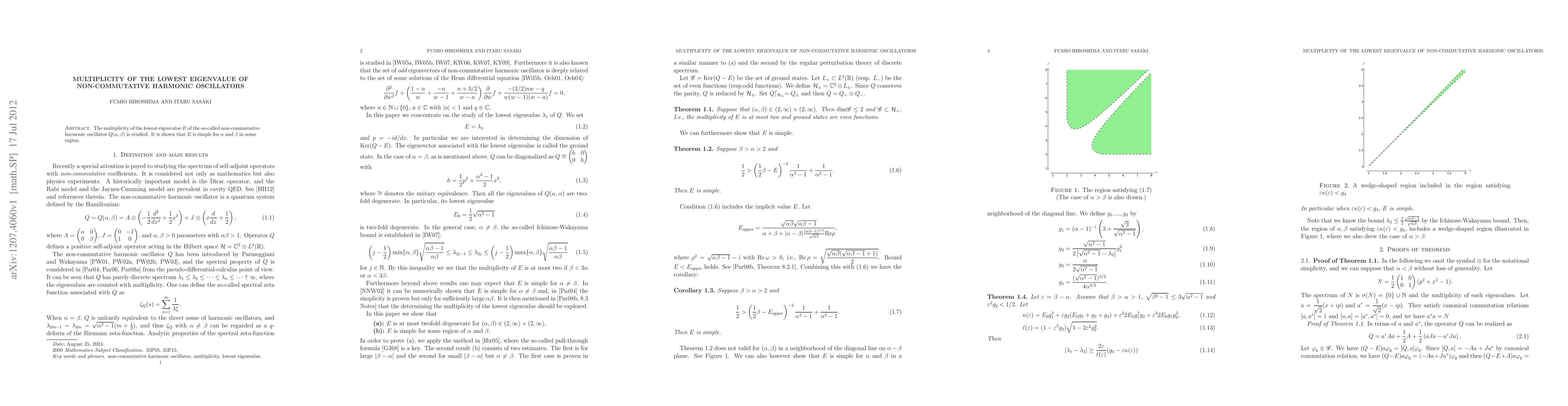 This research investigates the non-commutative harmonic oscillator Q(alpha,eta), demonstrating that its lowest eigenvalue E is simple within specific alpha and eta regions.