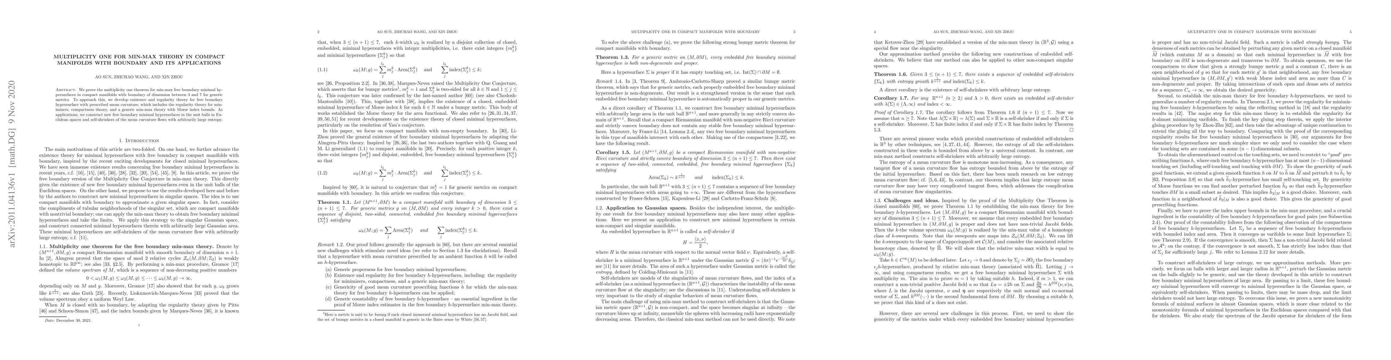 This paper proves the multiplicity one theorem for min-max free boundary minimal hypersurfaces in compact manifolds with boundary, establishing existence and regularity theory for these surfaces. Applications include new constructions of free boundary minimal hypersurfaces in unit balls and self-shrinkers of mean curvature flows.