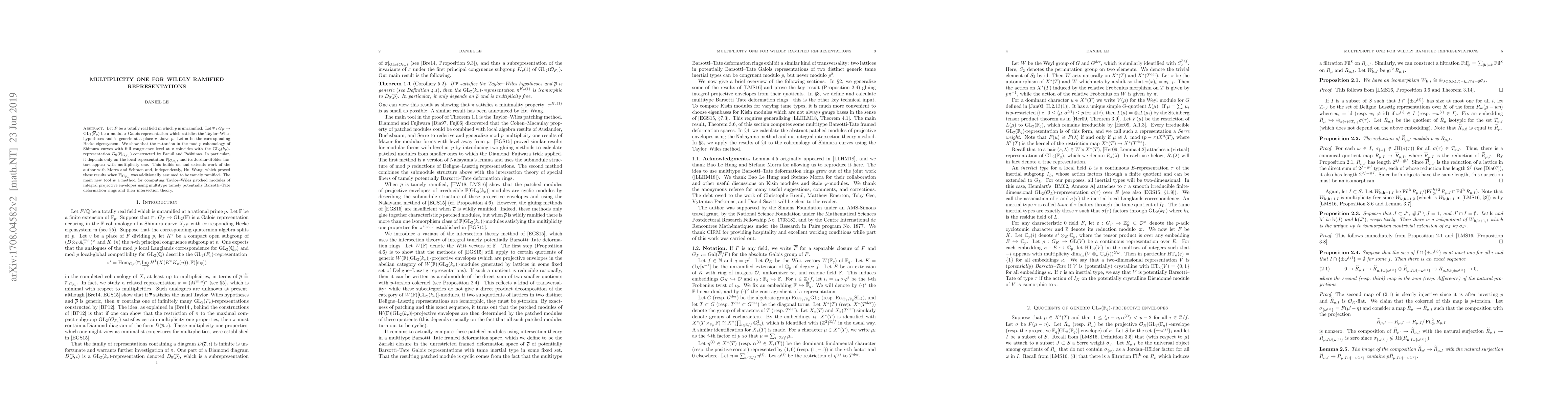 Let $F$ be a totally real field in which $p$ is unramified. Let $\overline{r}: G_F \rightarrow \mathrm{GL}_2(\overline{\mathbb{F}}_p)$ be a modular Galois representation which satisfies the Taylor-Wiles hypotheses and is generic at a place $v$ above $p$. Let $\mathfrak{m}$ be the corresponding Hecke eigensystem. Then the $\mathfrak{m}$-torsion in the mod $p$ cohomology of Shimura curves with full congruence level at $v$ coincides with the $\mathrm{GL}_2(k_v)$-representation $D_0(\overline{r}|_{G_{F_v}})$ constructed by Breuil and Pa\v{s}k\={u}nas. In particular, it depends only on the local representation $\overline{r}|_{G_{F_v}}$, and its Jordan-H\"older factors appear with multiplicity one. This builds on and extends work of the author with Morra and Schraen and independently of Hu-Wang, which proved these results when $\overline{r}|_{G_{F_v}}$ was additionally assumed to be tamely ramified. The main new tool is a method for computing Taylor-Wiles patched modules of integral projective envelopes using multitype tamely potentially Barsotti-Tate deformation rings and their intersection theory.