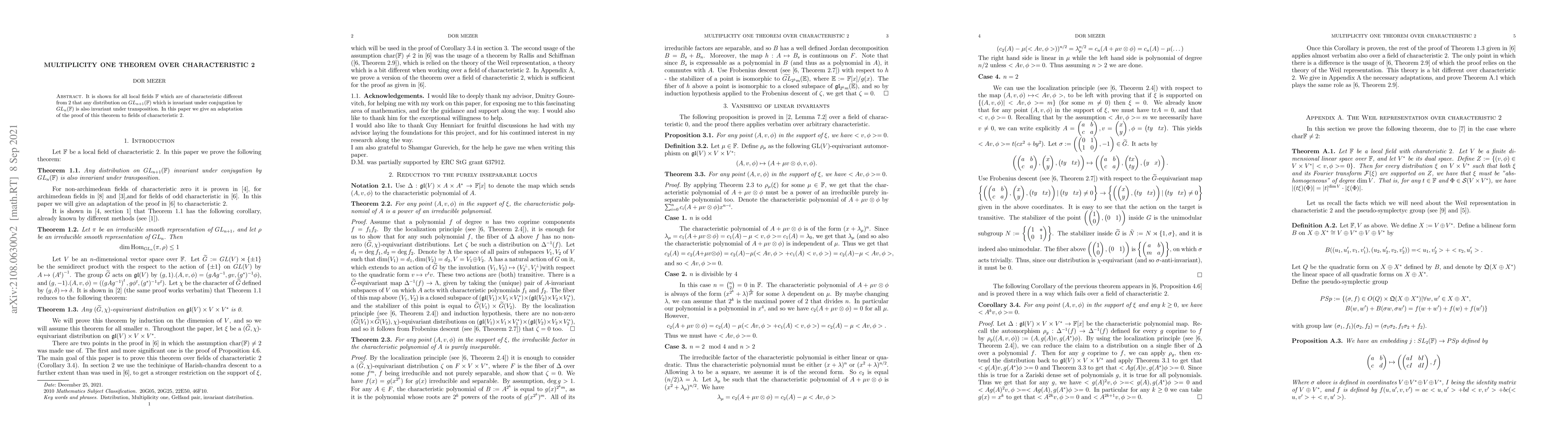 A distribution on GL_n+1(F) invariant under conjugation by GL_n(F) is also invariant under transposition in local fields of characteristic not 2. The paper adapts the proof for fields of characteristic 2.