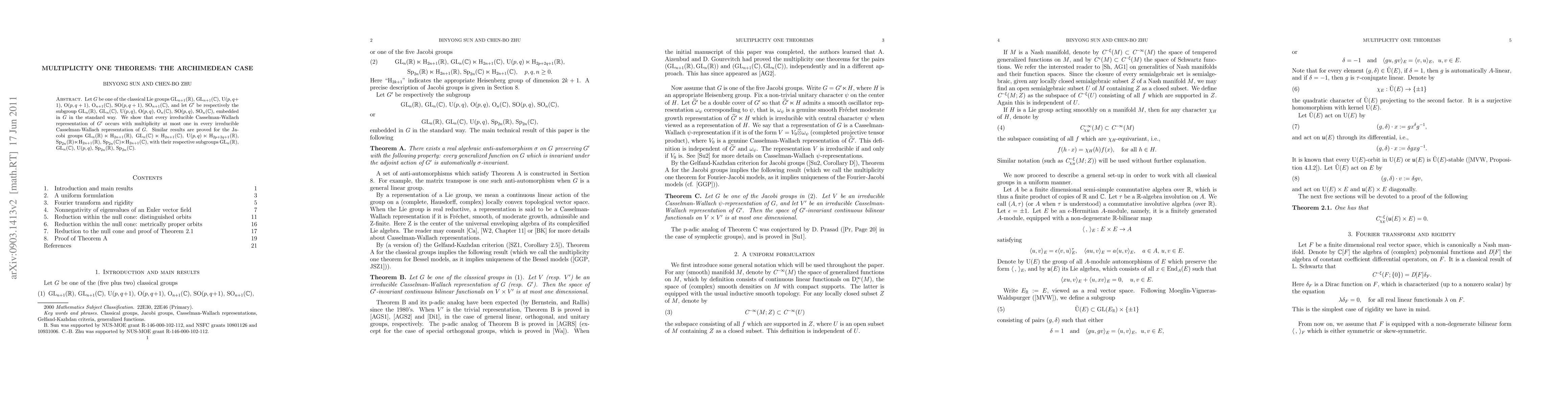 This paper proves that every irreducible Casselman-Wallach representation of classical Lie groups $G'$ occurs with multiplicity at most one in every irreducible Casselman-Wallach representation of larger groups $G$. The results also extend to Jacobi groups and their respective subgroups.