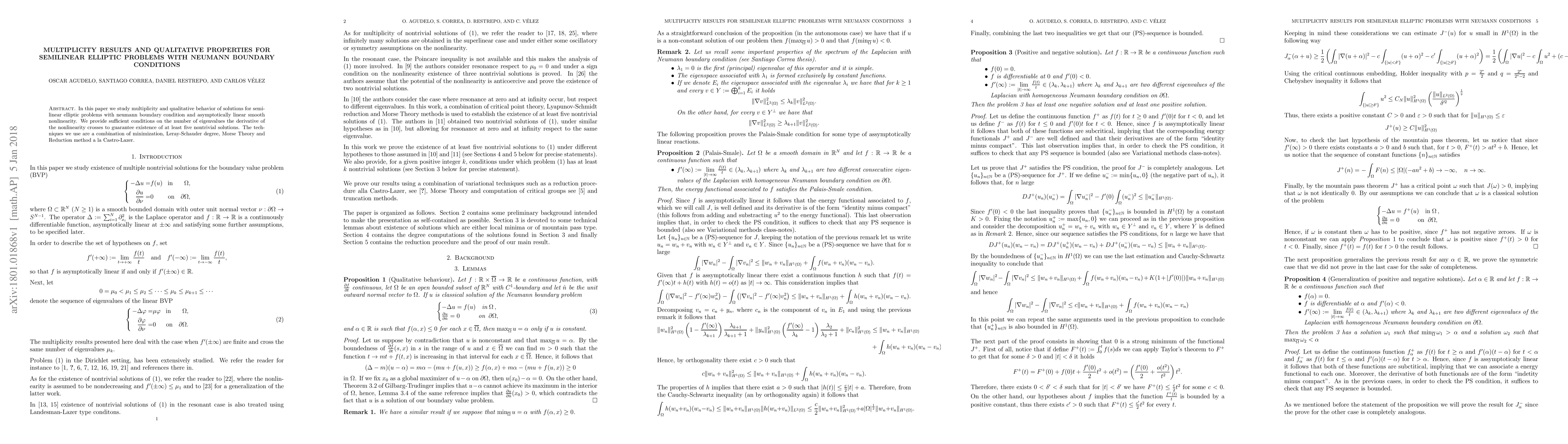 This paper explores the multiplicity and qualitative properties of solutions for semilinear elliptic problems with Neumann boundary conditions and asymptotically linear smooth nonlinearity. It establishes sufficient conditions for the existence of at least five nontrivial solutions using a combination of minimization, Leray-Schauder degree, Morse Theory, and Reduction method.
