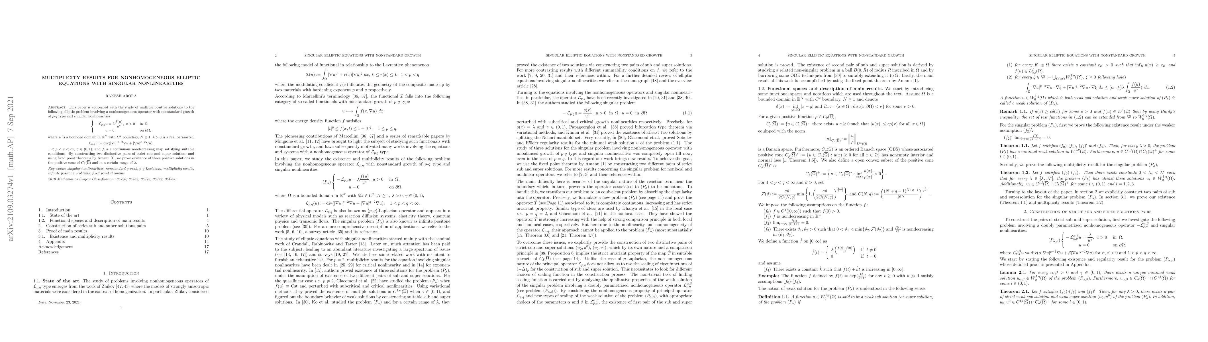 This paper investigates multiple positive solutions for a nonhomogeneous elliptic equation with $p$-$q$ type growth and singular nonlinearities. By constructing sub and super solutions and applying Amann's fixed point theorems, the authors prove the existence of three positive solutions in a specified range for the parameter $\lambda$.