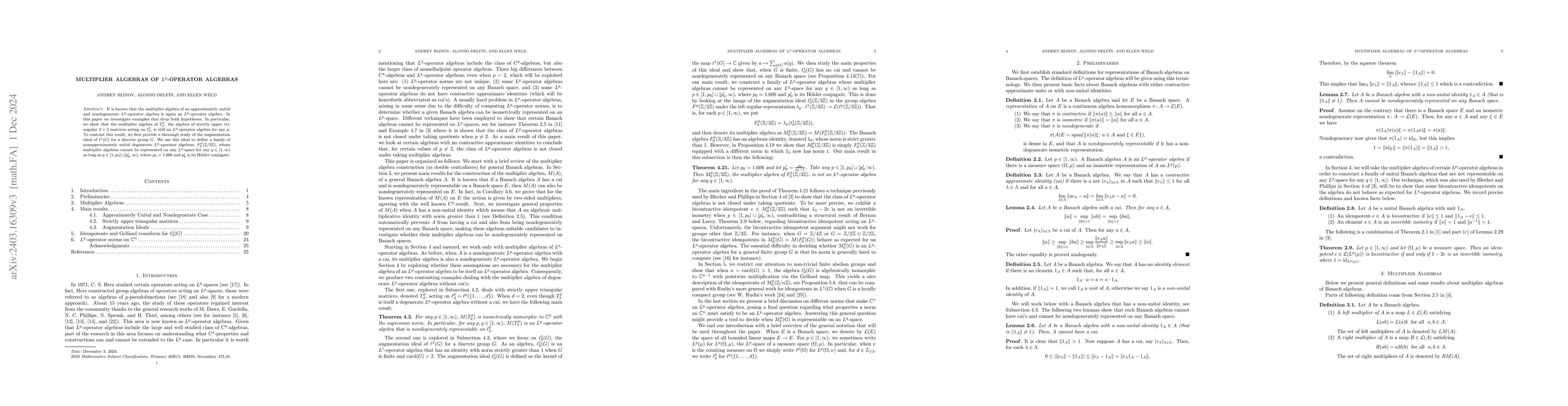 It is known that the multiplier algebra of an approximately unital and nondegenerate $L^p$-operator algebra is again an $L^p$-operator algebra. In this paper we investigate examples that drop both hypotheses. In particular, we show that the multiplier algebra of $T_2^p$, the algebra of strictly upper triangular $2 \times 2$ matrices acting on $\ell_2^p$, is still an $L^p$-operator algebra for any $p$. To contrast this result, we first provide a thorough study of the augmentation ideal of $\ell^1(G)$ for a discrete group $G$. We use this ideal to define a family of non approximately unital degenerate $L^p$-operator algebras, $F_{r,0}^p(\Bbb{Z}/3\Bbb{Z})$, whose multiplier algebras cannot be represented on any $L^q$-space for any $q \in [1, \infty)$ as long as $p \in [1, p_0] \cup [p_0', \infty)$, where $p_0=1.606$ and $p_0'$ is its H\"older conjugate.