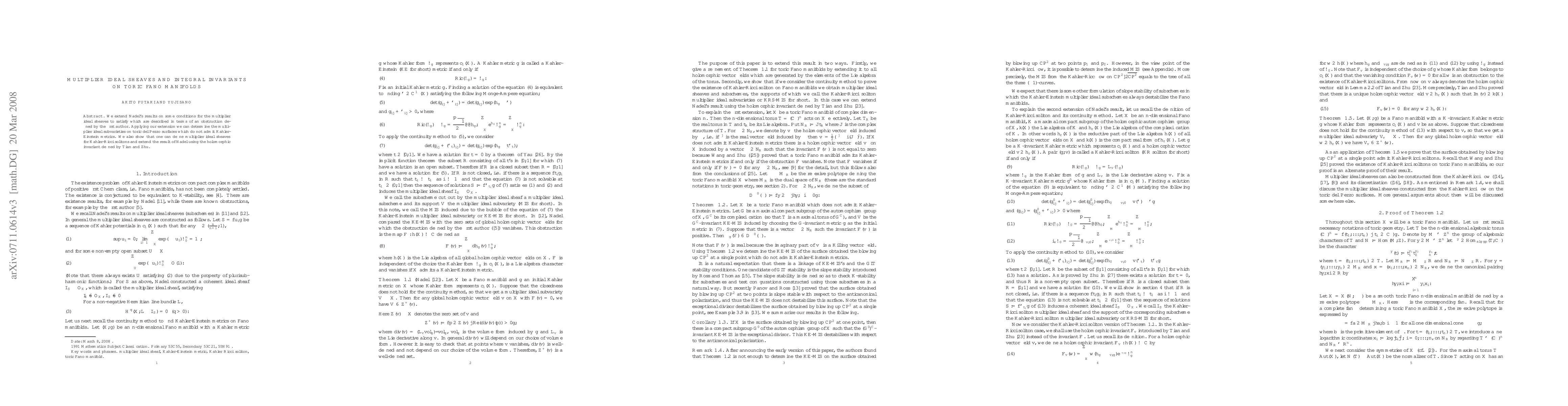 This paper extends Nadel's conditions for multiplier ideal sheaves and applies the results to determine these sheaves on toric del Pezzo surfaces lacking Kähler-Einstein metrics. It also introduces multiplier ideal sheaves for Kähler-Ricci solitons and extends Nadel's theorem via a holomorphic invariant by Tian and Zhu.