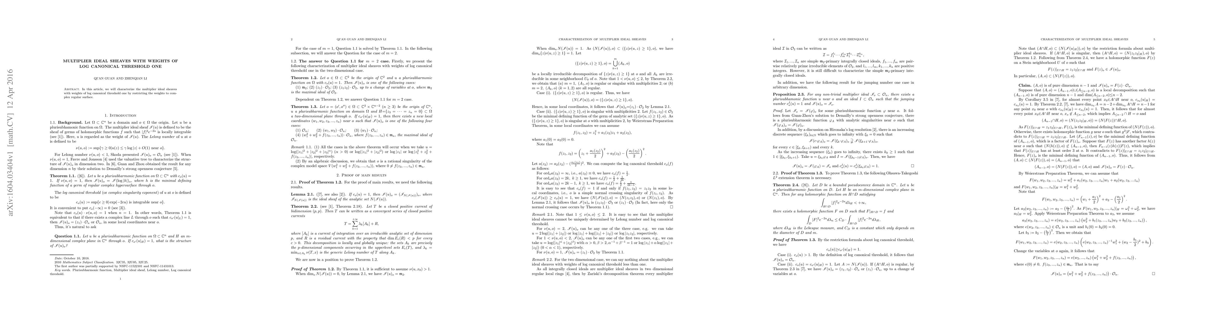 In this article, we will characterize the multiplier ideal sheaves with weights of log canonical threshold one by restricting the weights to complex regular surface.