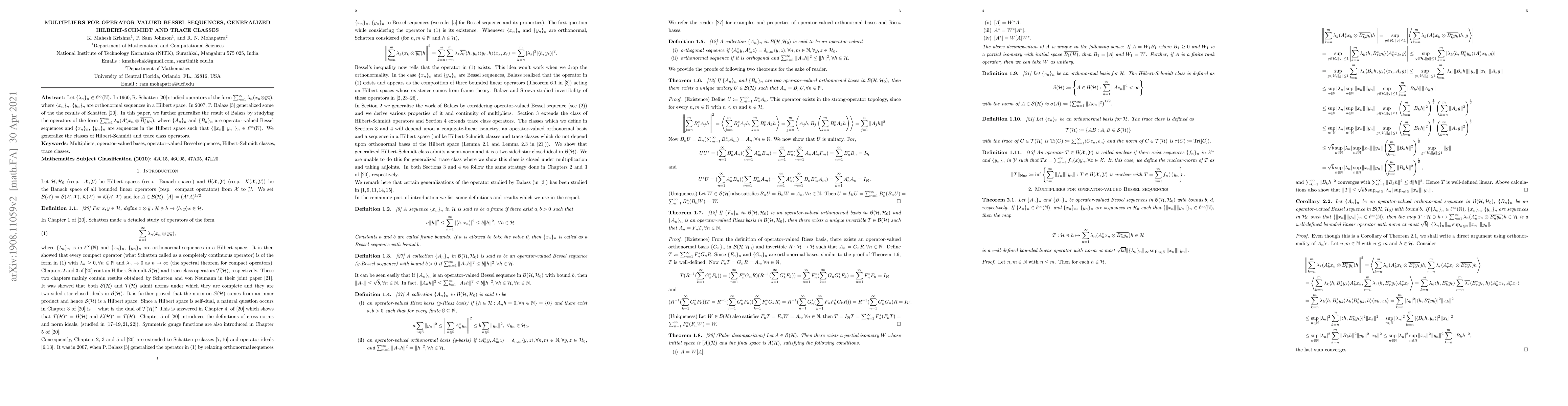 Let $\{\lambda_n\}_n \in \ell^\infty(\mathbb{N})$. In 1960, R. Schatten \cite{SCHATTEN} studied operators of the form $\sum_{n=1}^{\infty}\lambda_n (x_n\otimes \bar{y_n})$, where $\{x_n\}_n$, $\{y_n\}_n$ are orthonormal sequences in a Hilbert space. In 2007, P. Balazs \cite{BALAZS3} generalized this by replacing $\{x_n\}_n$ and $\{y_n\}_n$ by Bessel sequences. In this paper, we generalize this by studying the operators of the form $\sum_{n=1}^{\infty}\lambda_n (A^*_nx_n\otimes \bar{B^*_ny_n})$, where $\{A_n\}_n$ and $\{B_n\}_n$ are operator-valued Bessel sequences and $\{x_n\}_n$, $\{y_n\}_n$ are sequences in the Hilbert space such that $\{\|x_n\|\|y_n\|\}_n \in \ell^\infty(\mathbb{N})$. We next generalize the classes of Hilbert-Schmidt and trace class operators.