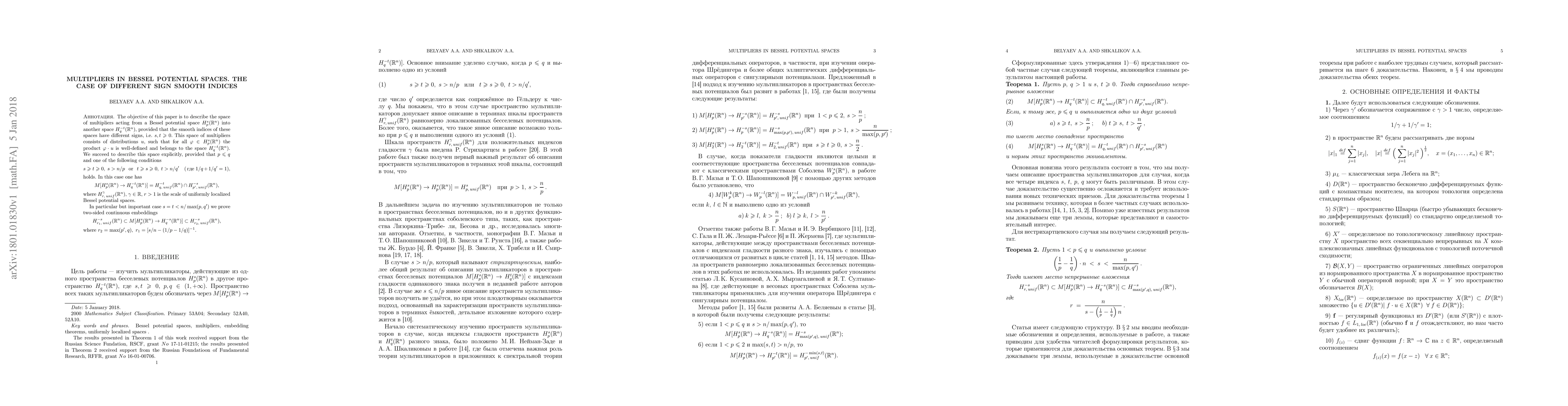 This paper describes a space of multipliers acting between Bessel potential spaces with different smooth indices, finding explicit conditions for their existence and properties.