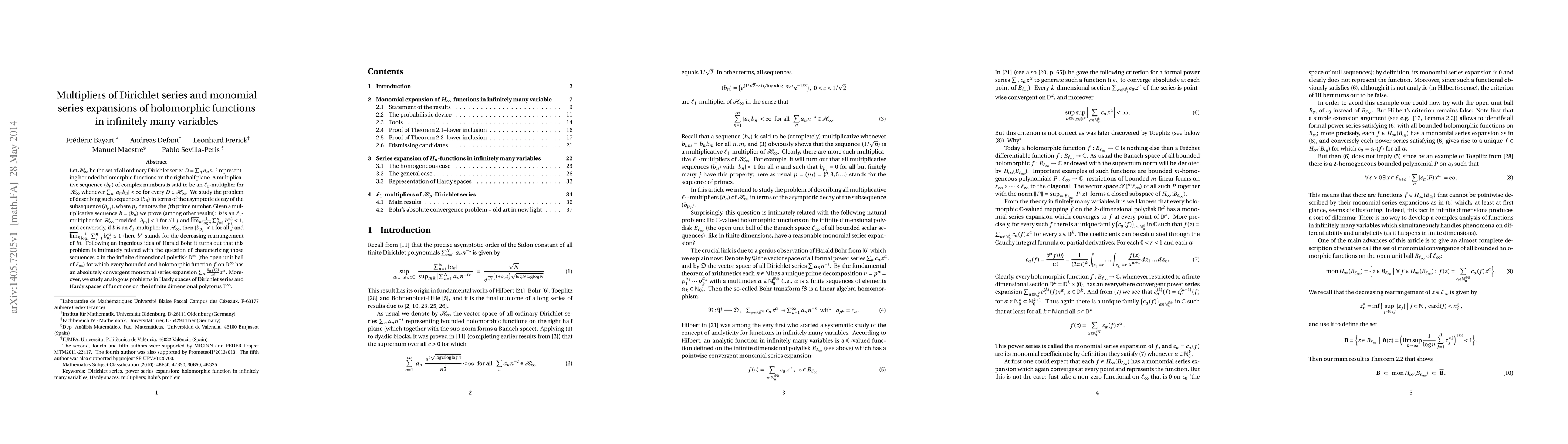 This research paper explores how certain sequences of complex numbers can be used to multiply Dirichlet series expansions of holomorphic functions in infinitely many variables, leading to new insights into convergence and asymptotic behavior.