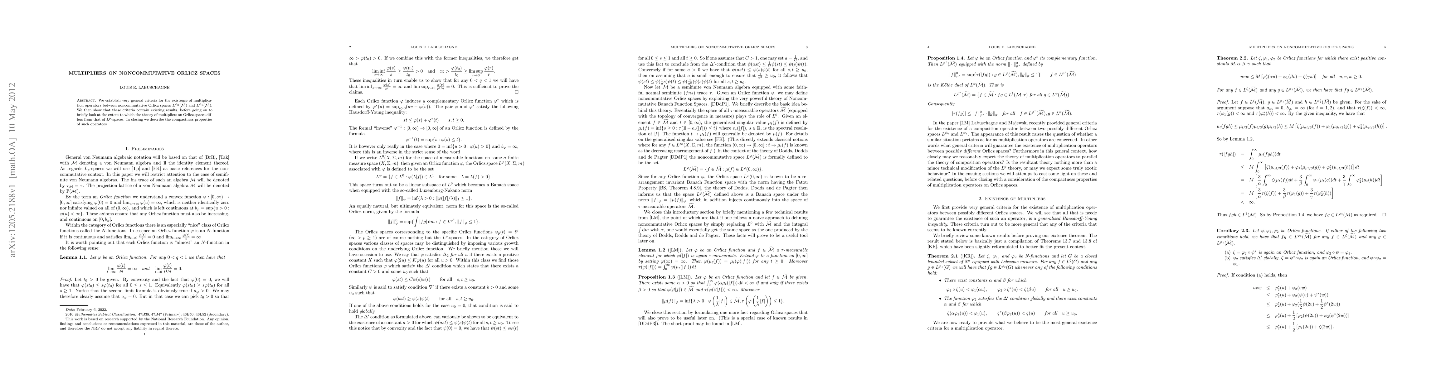 We establish very general criteria for the existence of multiplication operators between noncommutative Orlicz spaces $L^{\psi_0}(\tM)$ and $L^{\psi_1}(\tM)$. We then show that these criteria contain existing results, before going on to briefly look at the extent to which the theory of multipliers on Orlicz spaces differs from that of $L^p$-spaces. In closing we describe the compactness properties of such operators.