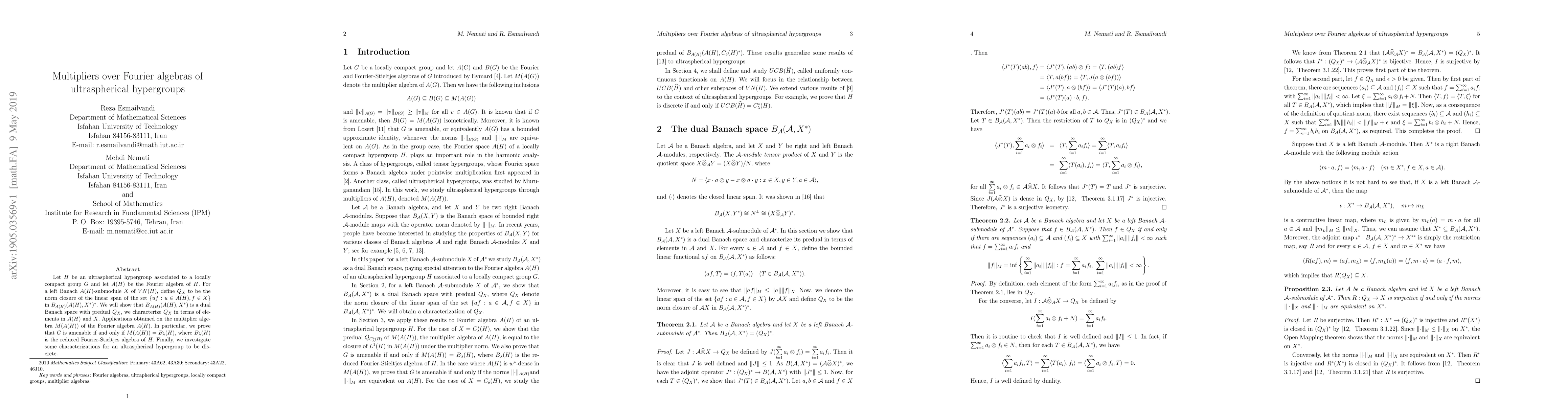 This paper investigates the relationship between ultraspherical hypergroups and their Fourier algebras, characterizing the multiplier algebra and its connection to amenability and discreteness of the group.