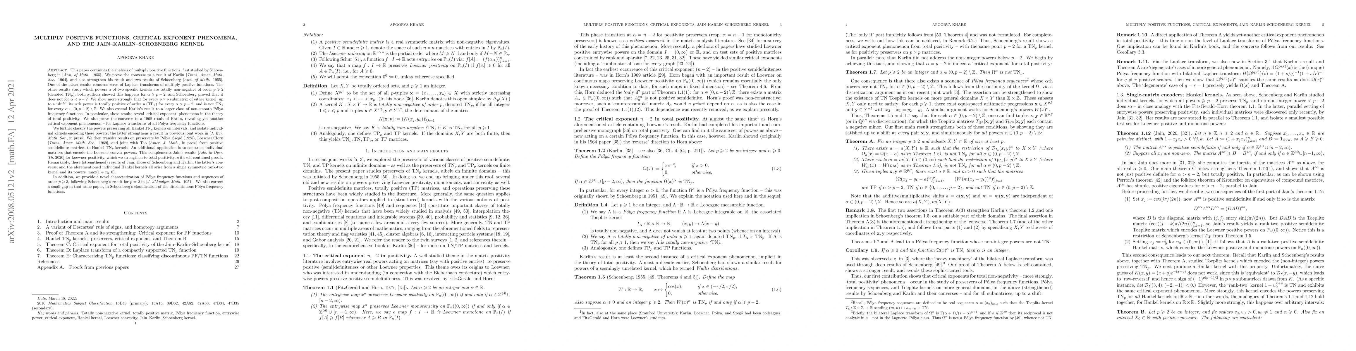 Jain, those of Schoenberg and Karlin, the latter's converse, and the above