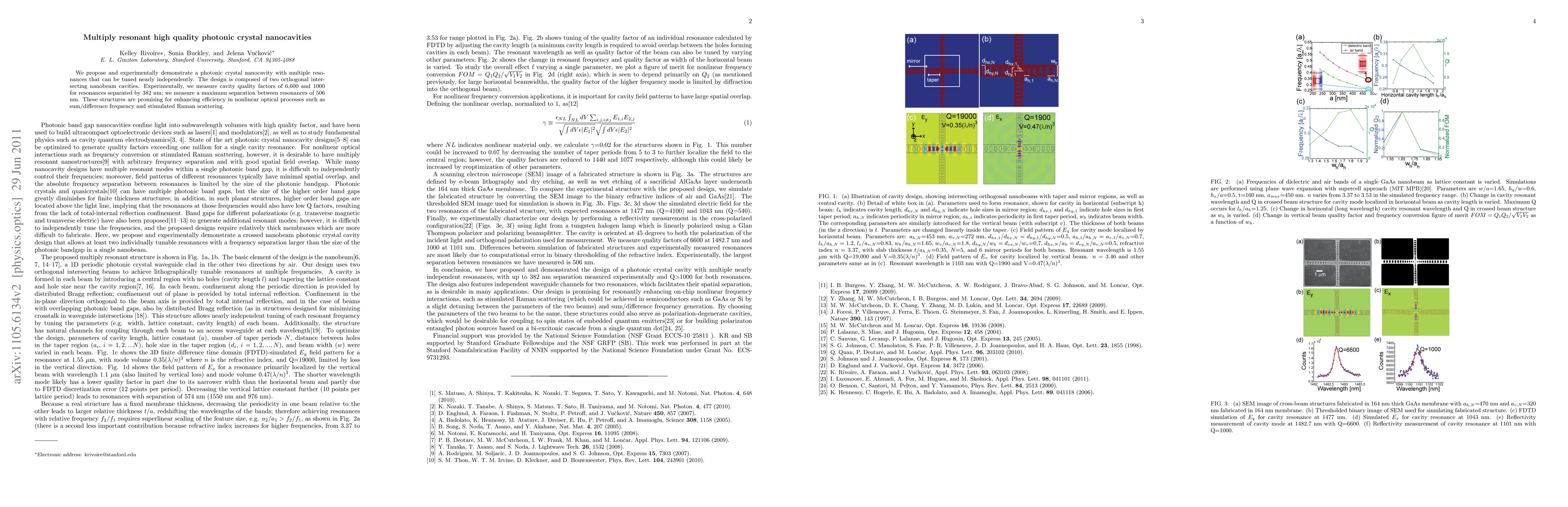 This paper proposes and demonstrates a photonic crystal nanocavity with multiple independently tunable resonances, achieving high quality factors and significant resonance separation, which enhances efficiency in nonlinear optical processes.