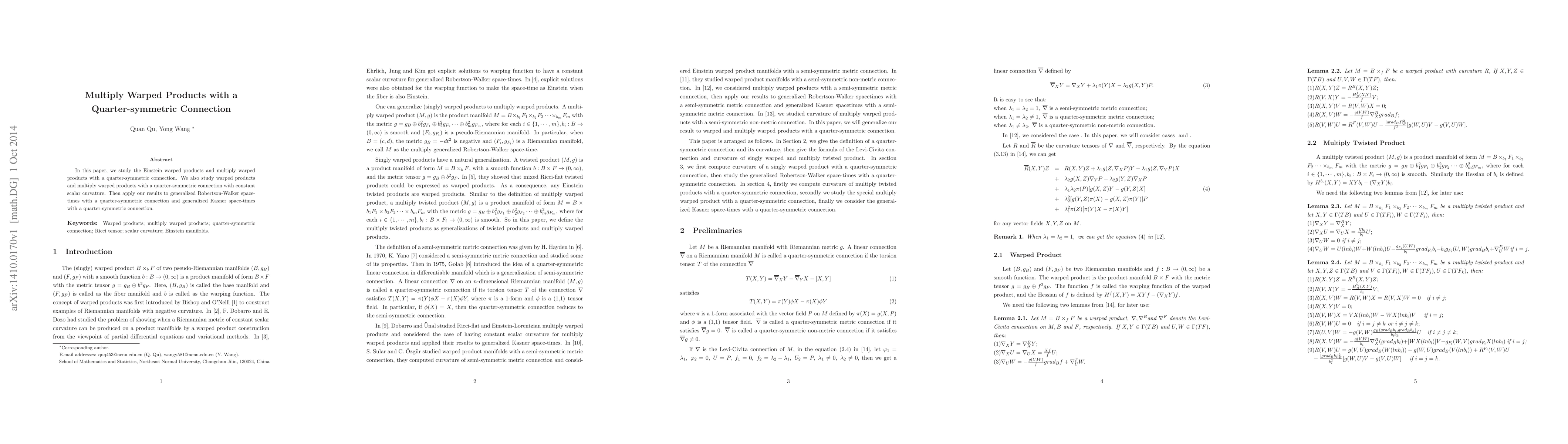This paper investigates Einstein and multiply warped products with a quarter-symmetric connection, focusing on those with constant scalar curvature, and applies these findings to generalized Robertson-Walker and Kasner spacetimes featuring a quarter-symmetric connection.