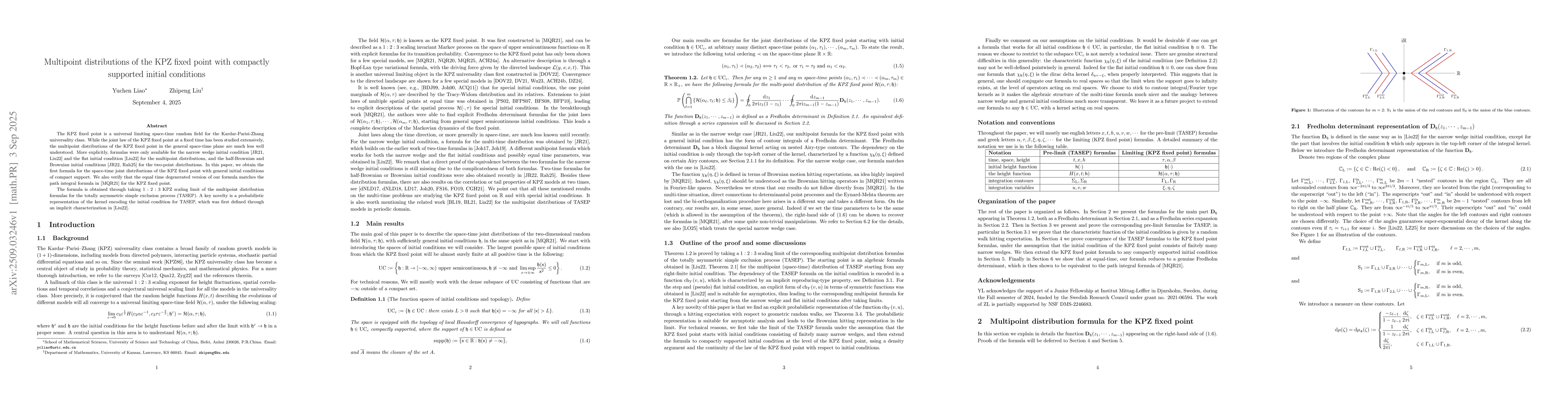 The KPZ fixed point is a universal limiting space-time random field for the Kardar-Parisi-Zhang universality class. While the joint law of the KPZ fixed point at a fixed time has been studied extensively, the multipoint distributions of the KPZ fixed point in the general space-time plane are much less well understood. More explicitly, formulas were only available for the narrow wedge initial condition arXiv:1906.01053, arXiv:1907.09876 and the flat initial condition arXiv:1907.09876 for the multipoint distributions, and the half-Brownian and Brownian initial conditions arXiv:2010.07357v1, arXiv:2504.19975 for the two-point distributions. In this paper, we obtain the first formula for the space-time joint distributions of the KPZ fixed point with general initial conditions of compact support. The formula is obtained through taking $1:2:3$ KPZ scaling limit of the multipoint distribution formulas for the totally asymmetric simple exclusion process (TASEP). A key novelty is a probabilistic representation, inspired by arXiv:1701.00018, of the kernel encoding the initial condition for TASEP, which was first defined through an implicit characterization in arXiv:1907.09876. Moreover, we also verify that the equal time degenerated version of our formula matches the path integral formula in arXiv:1701.00018 for the KPZ fixed point.