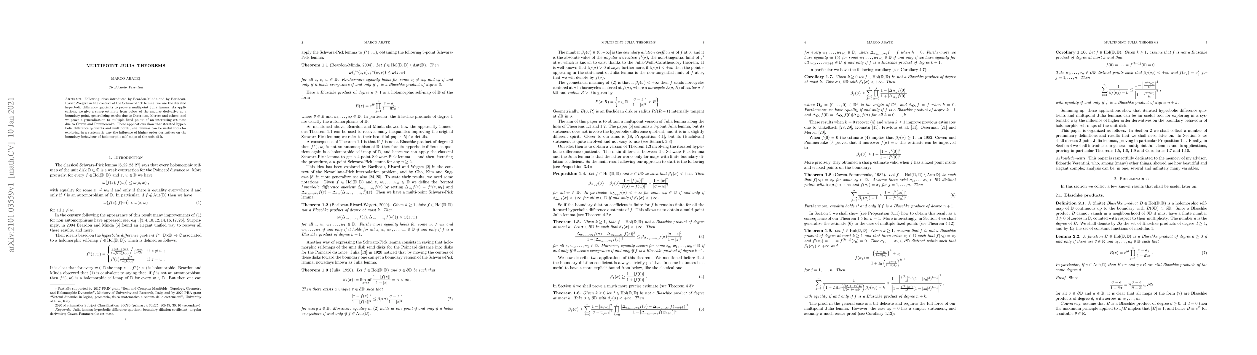 This research introduces a new approach using hyperbolic difference quotients to extend Julia's lemma to multiple points, providing sharper estimates of boundary behavior for holomorphic functions. These results help understand how higher derivatives influence the function's boundary dynamics in the unit disk.