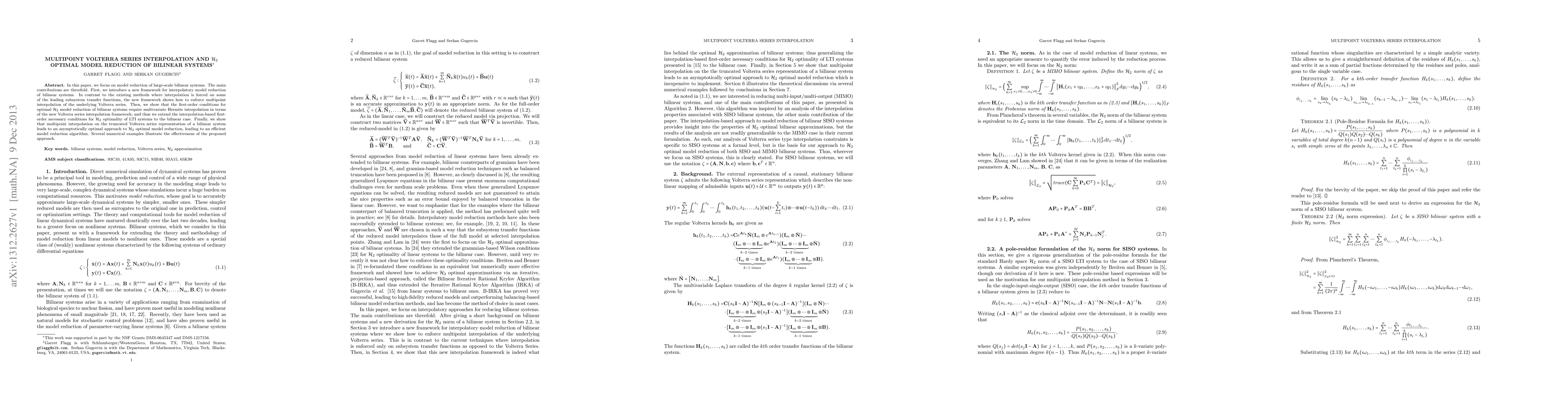 This paper presents a new framework for model reduction of bilinear systems using multipoint Volterra series interpolation, extending H2 optimal reduction conditions to bilinear systems, and demonstrates an asymptotically optimal model reduction algorithm through numerical examples.