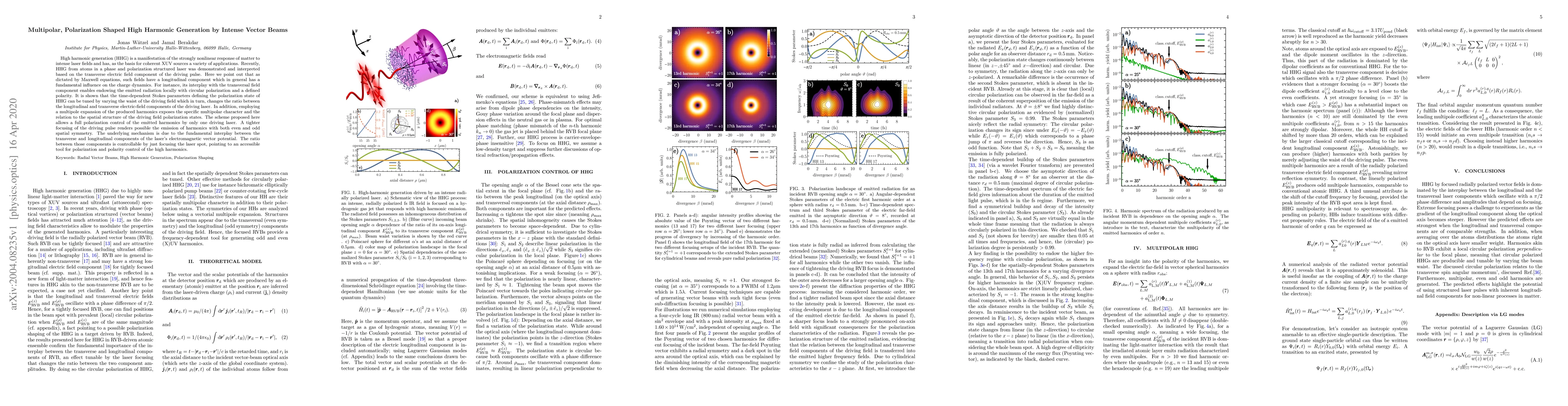 High harmonic generation (HHG) is a manifestation of the strongly nonlinear response of matter to intense laser fields and has, as the basis for coherent XUV sources a variety of applications. Recently, HHG from atoms in a phase and polarization structured laser was demonstrated and interpreted based on the transverse electric field component of the driving pulse. Here we point out that as dictated by Maxwell equations, such fields have a longitudinal component which in general has a fundamental influence on the charge dynamics. For instance, its interplay with the transversal field component enables endowing the emitted radiation locally with circular polarization and a defined polarity. It is shown that the time-dependent Stokes parameters defining the polarization state of HHG can be tuned by varying the waist of the driving field which in turn, changes the ratio between the longitudinal and transverse electric-field components of the driving laser. In addition, employing a multipole expansion of the produced harmonics exposes the specific multipolar character and the relation to the spatial structure of the driving field polarization states. The scheme proposed here allows a full polarization control of the emitted harmonics by only one driving laser. A tighter focusing of the driving pulse renders possible the emission of harmonics with both even and odd spatial symmetry. The underlying mechanism is due to the fundamental interplay between the transverse and longitudinal components of the laser's electromagnetic vector potential. The ratio between those components is controllable by just focusing the laser spot, pointing to an accessible tool for polarization and polarity control of the high harmonics.