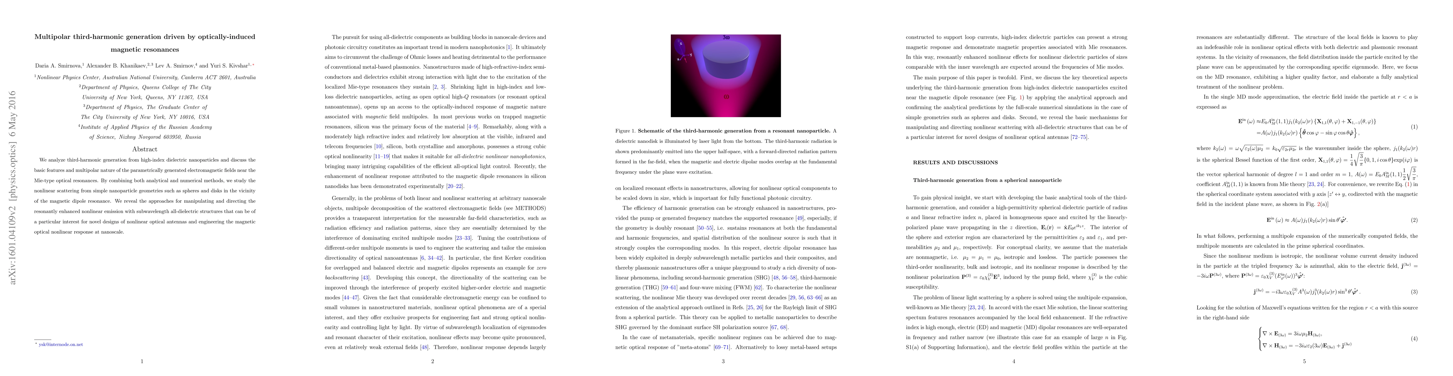 This research investigates third-harmonic generation in high-index dielectric nanoparticles, focusing on the multipolar electromagnetic fields during Mie-type optical resonances. The study combines analytical and numerical methods to explore nonlinear scattering in simple geometries, revealing strategies for controlling and directing enhanced nonlinear emissions with subwavelength dielectric structures.