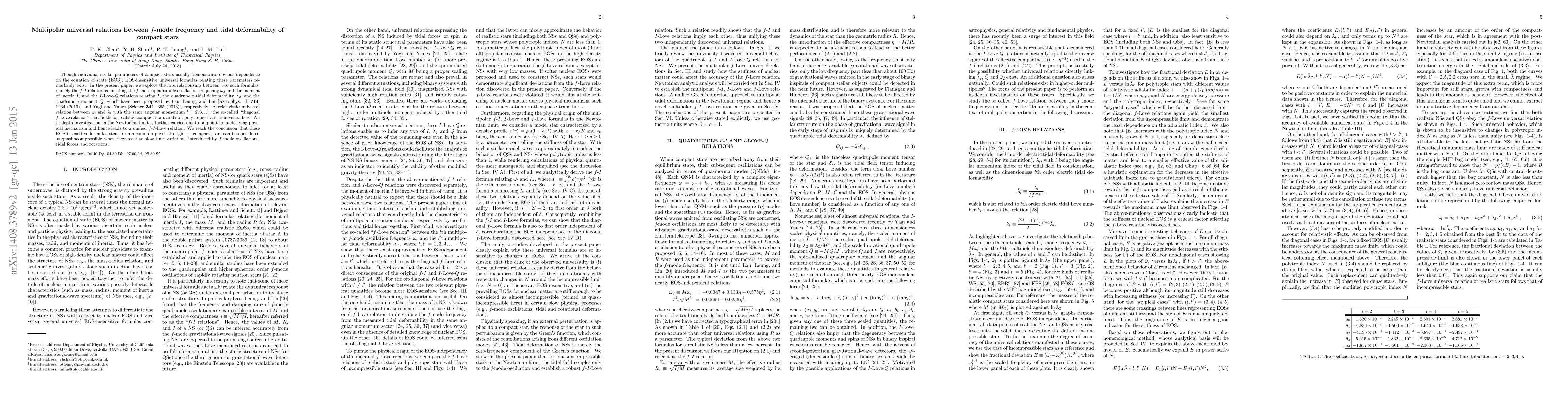 Though individual stellar parameters of compact stars usually demonstrate obvious dependence on the equation of state (EOS), EOS-insensitive universal formulas relating these parameters remarkably exist. In the present paper, we explore the interrelationship between two such formulas, namely the $f$-$I$ relation connecting the $f$-mode quadrupole oscillation frequency $\omega_2$ and the moment of inertia $I$, and the $I$-Love-$Q$ relations relating $I$, the quadrupole tidal deformability $\lambda_2$, and the quadrupole moment $Q$, which have been proposed by Lau, Leung, and Lin [Astrophys. J. {\bf 714}, 1234 (2010)] and Yagi and Yunes [Science {\bf 341}, 365 (2013)], respectively. A relativistic universal relation between $\omega_l$ and $\lambda_l$ with the same angular momentum $l=2,3,\ldots$, the so-called "diagonal $f$-Love relation" that holds for realistic compact stars and stiff polytropic stars, is unveiled here. An in-depth investigation in the Newtonian limit is further carried out to pinpoint its underlying physical mechanism and hence leads to a unified $f$-$I$-Love relation. We reach the conclusion that these EOS-insensitive formulas stem from a common physical origin --- compact stars can be considered as quasiincompressible when they react to slow time variations introduced by $f$-mode oscillations, tidal forces and rotations.