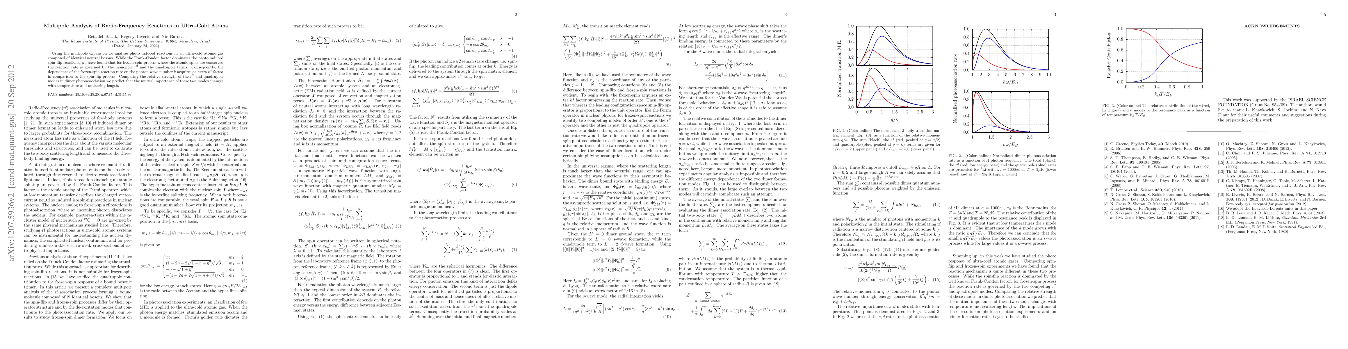 Using the multipole expansion we analyze photo induced reactions in an ultra-cold atomic gas composed of identical neutral bosons. While the Frank-Condon factor dominates the photo induced spin-flip reactions, we have found that for frozen-spin process where the atomic spins are conserved the reaction rate is governed by the monopole $r^2$ and the quadrupole terms. Consequently, the dependence of the frozen-spin reaction rate on the photon wave number $k$ acquires an extra $k^4$ factor in comparison to the spin-flip process. Comparing the relative strength of the $r^2$ and quadrupole modes in dimer photoassociation we predict that the mutual importance of these two modes changes with temperature and scattering length.