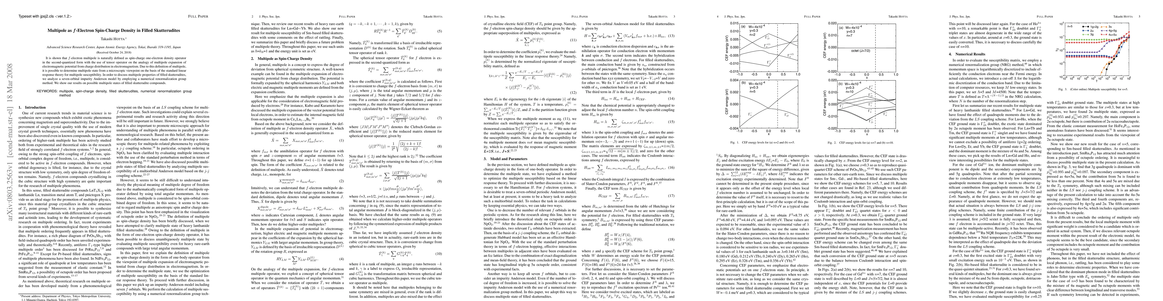 It is shown that $f$-electron multipole is naturally defined as spin-charge one-electron density operator in the second-quantized form with the use of tensor operator on the analogy of multipole expansion of electromagnetic potential from charge distribution in electromagnetism. Due to this definition of multipole, it is possible to determine multipole state from a microscopic viewpoint on the basis of the standard linear response theory for multipole susceptibility. In order to discuss multipole properties of filled skutterudites, we analyze a seven-orbital impurity Anderson model by employing a numerical renormalization group method. We show our results on possible multipole states of filled skutterudite compounds.