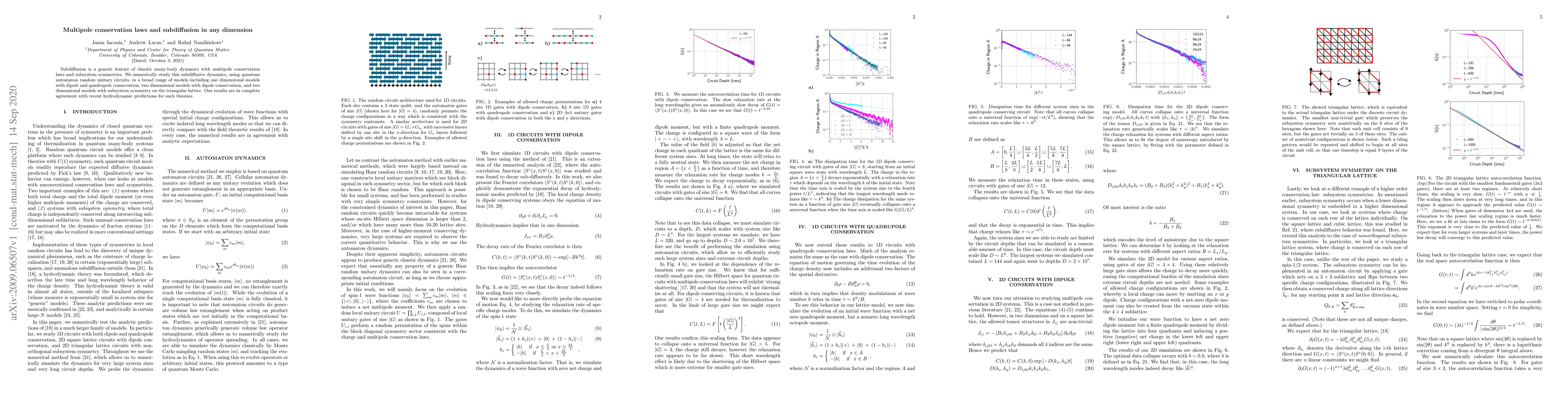 Subdiffusion is a generic feature of chaotic many-body dynamics with multipole conservation laws and subsystem symmetries. We numerically study this subdiffusive dynamics, using quantum automaton random unitary circuits, in a broad range of models including one dimensional models with dipole and quadrupole conservation, two dimensional models with dipole conservation, and two dimensional models with subsystem symmetry on the triangular lattice. Our results are in complete agreement with recent hydrodynamic predictions for such theories.