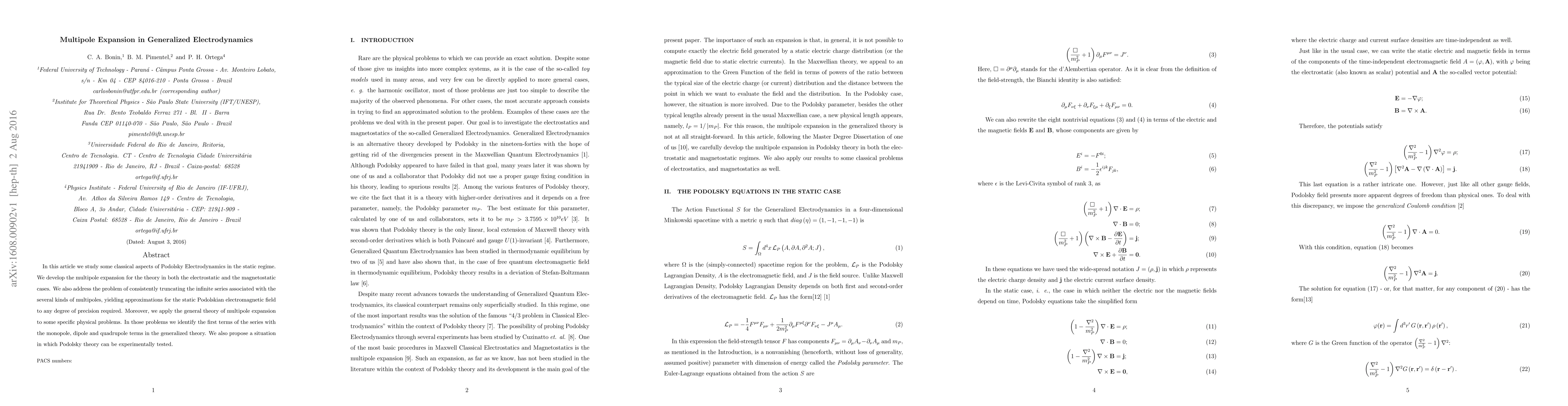 Researchers developed a multipole expansion for Podolsky Electrodynamics to study its static regime, proposing methods to truncate infinite series and apply it to specific physical problems, offering potential experimental testing scenarios.
