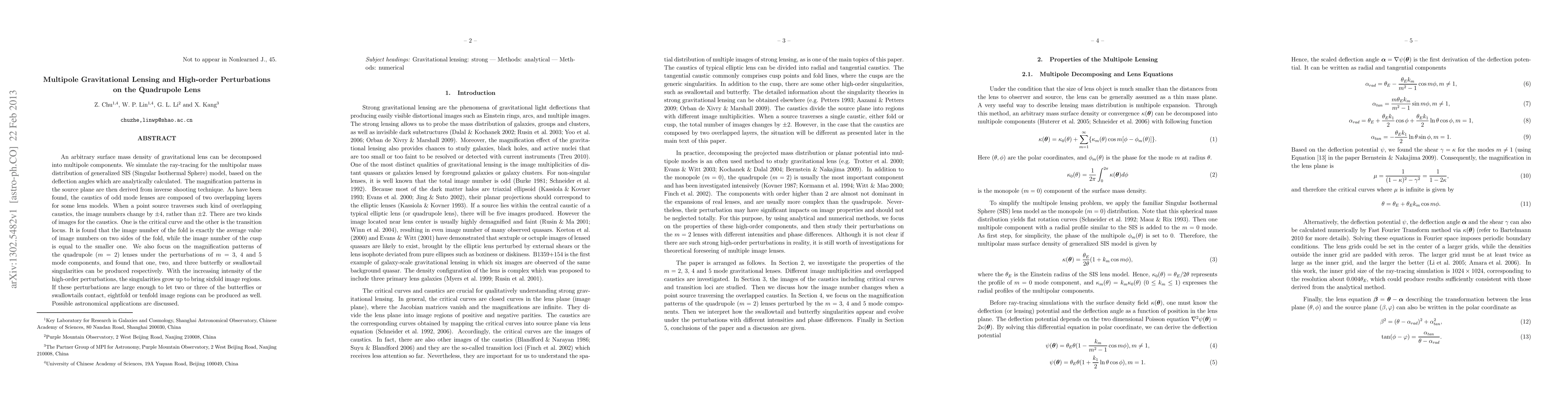 An arbitrary surface mass density of gravitational lens can be decomposed into multipole components. We simulate the ray-tracing for the multipolar mass distribution of generalized SIS (Singular Isothermal Sphere) model, based on the deflection angles which are analytically calculated. The magnification patterns in the source plane are then derived from inverse shooting technique. As have been found, the caustics of odd mode lenses are composed of two overlapping layers for some lens models. When a point source traverses such kind of overlapping caustics, the image numbers change by \pm 4, rather than \pm 2. There are two kinds of images for the caustics. One is the critical curve and the other is the transition locus. It is found that the image number of the fold is exactly the average value of image numbers on two sides of the fold, while the image number of the cusp is equal to the smaller one. We also focus on the magnification patterns of the quadrupole (m = 2) lenses under the perturbations of m = 3, 4 and 5 mode components, and found that one, two, and three butterfly or swallowtail singularities can be produced respectively. With the increasing intensity of the high-order perturbations, the singularities grow up to bring sixfold image regions. If these perturbations are large enough to let two or three of the butterflies or swallowtails contact, eightfold or tenfold image regions can be produced as well. The possible astronomical applications are discussed.