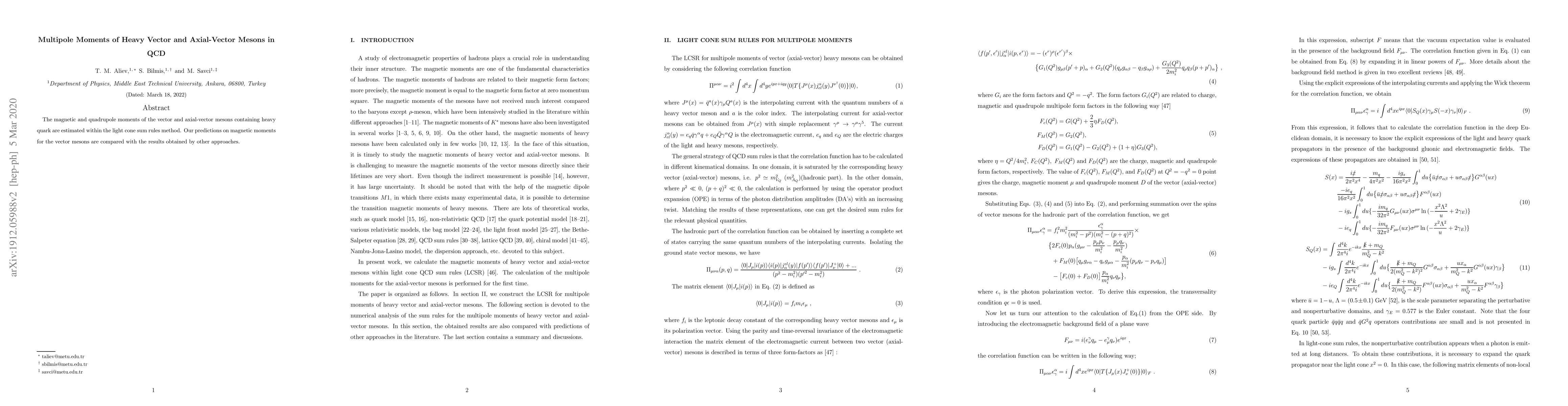 This paper estimates the magnetic and quadrupole moments of heavy vector and axial-vector mesons using the light cone sum rules method in QCD. The study compares its predictions for vector meson magnetic moments with results from other theoretical approaches.