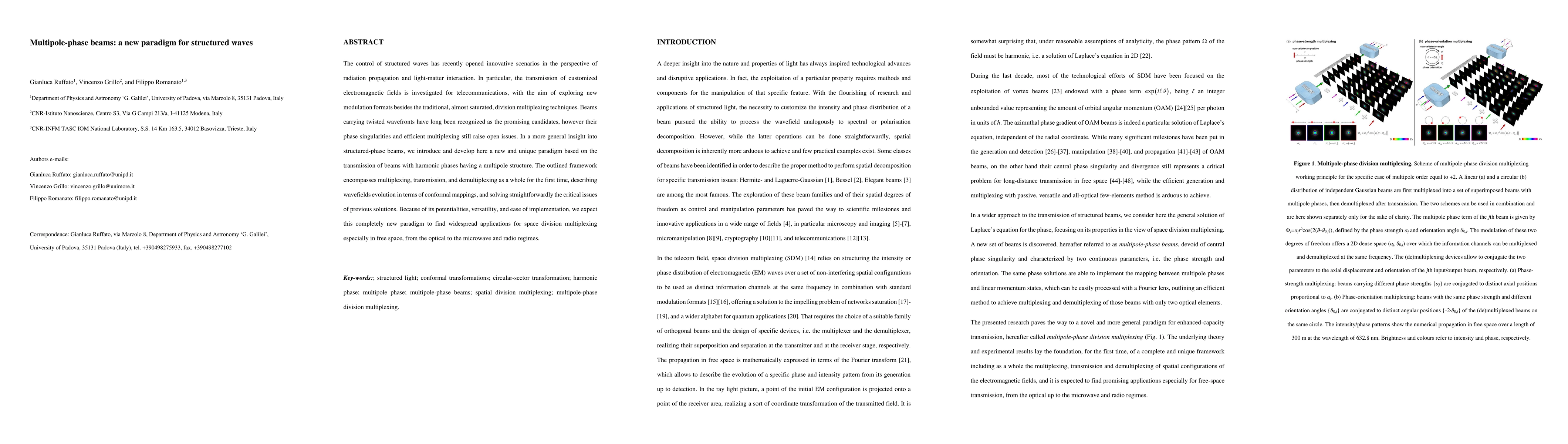 The paper outlines an innovative framework for the transmission of beams with multipole harmonic phases, presenting a conformal mapping solution for multiplexing, transmission, and demultiplexing.