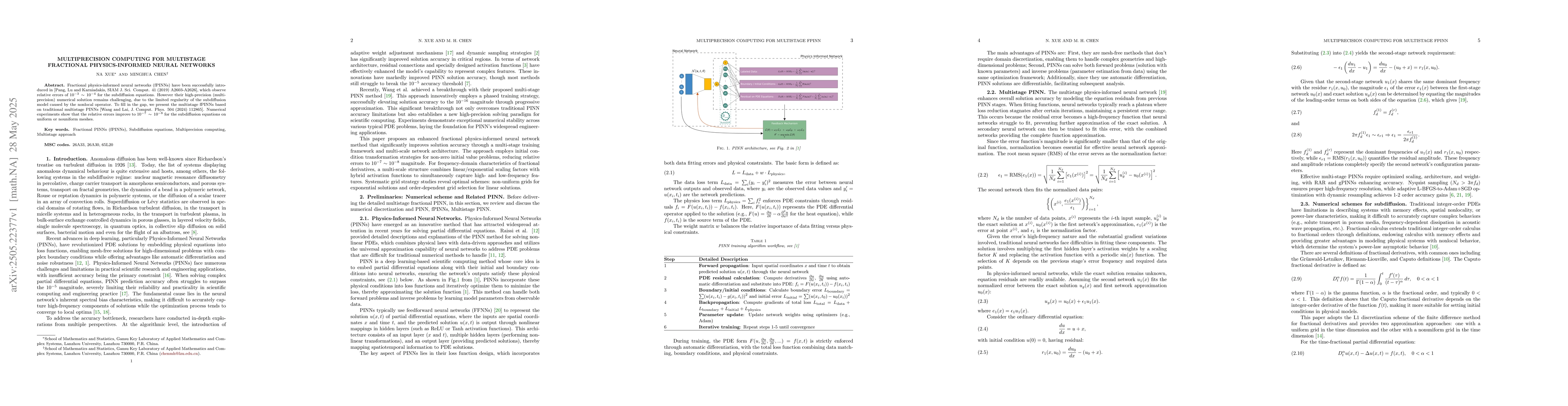 The research introduces multistage fractional physics-informed neural networks (fPINNs) to address the challenge of high-precision numerical solutions for subdiffusion equations, building upon traditional multistage PINNs.