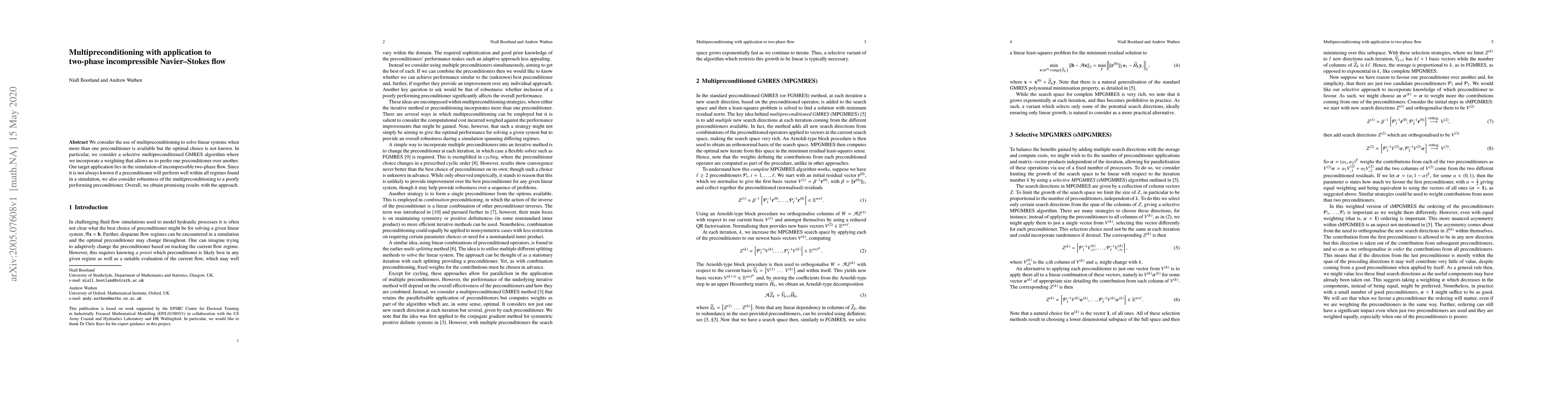 Researchers developed a method to optimize linear system solving for incompressible two-phase flow simulations using multipreconditioning with adaptable weighting. The approach showed promising results in handling poorly performing preconditioners.