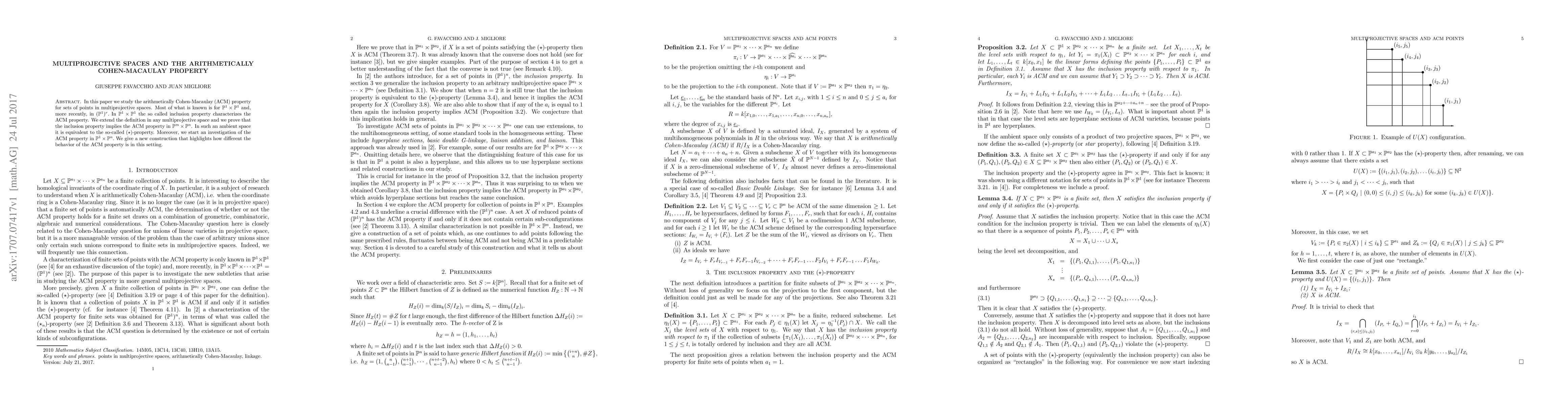 This paper extends the concept of the arithmetically Cohen-Macaulay (ACM) property to multiprojective spaces, proving that the inclusion property implies the ACM property in $\mathbb{P}^m \times \mathbb{P}^n$ and showing its equivalence to the $(\star)$-property. It also explores the ACM property in $\mathbb{P}^1 \times \mathbb{P}^n$ with a new construction revealing different ACM behavior.