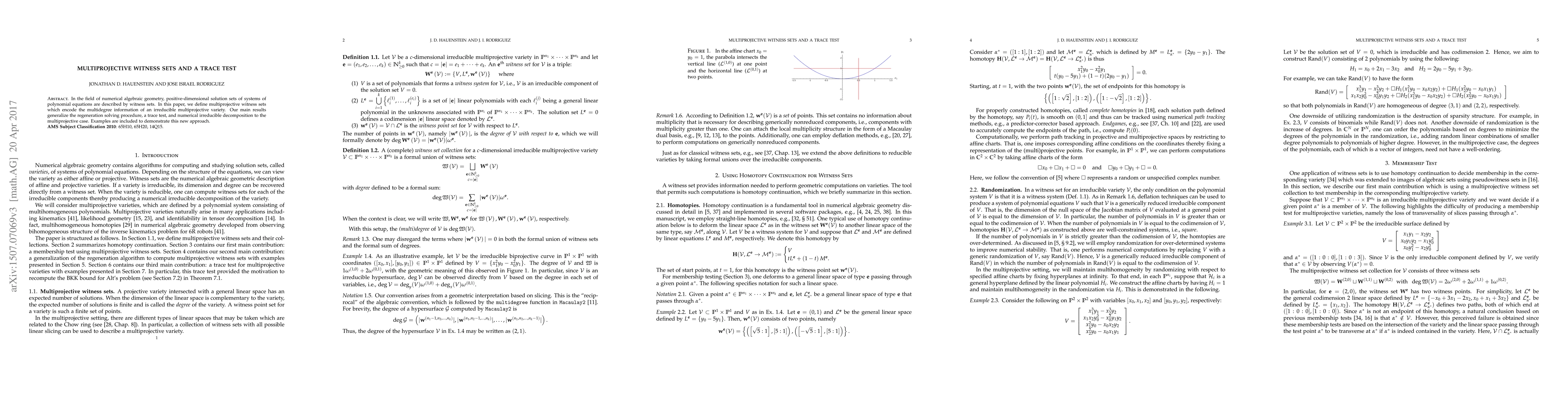 This paper introduces multiprojective witness sets that capture multidegree information of irreducible multiprojective varieties and generalizes the regeneration solving procedure, trace test, and numerical irreducible decomposition to this new framework, supported by illustrative examples.