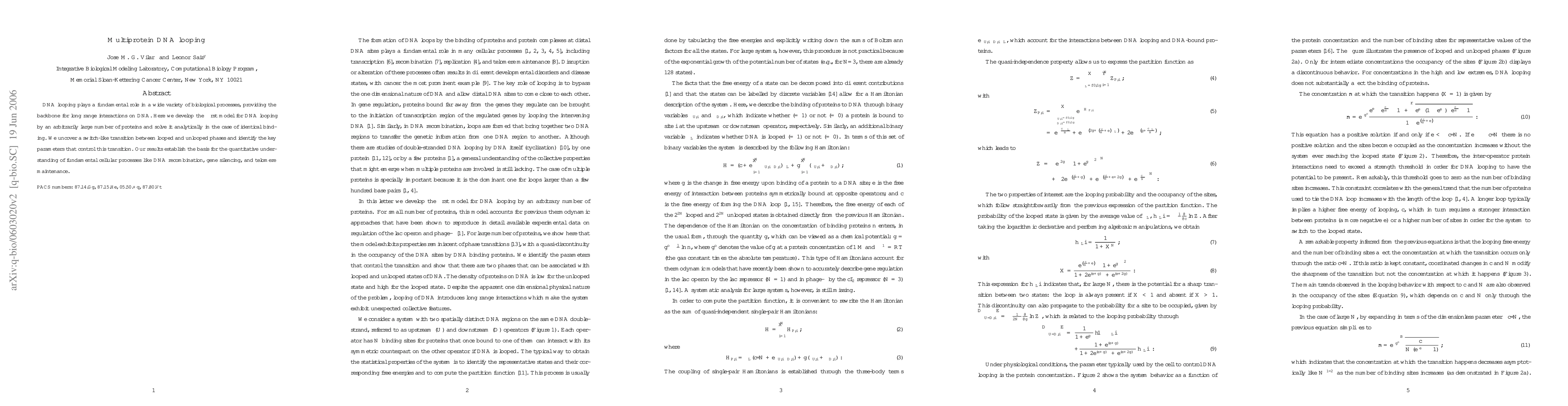 This paper develops an analytical model for DNA looping involving multiple proteins, revealing a switch-like transition between looped and unlooped phases and identifying key parameters that control this transition, thereby providing a foundation for understanding cellular processes such as DNA recombination and gene silencing.