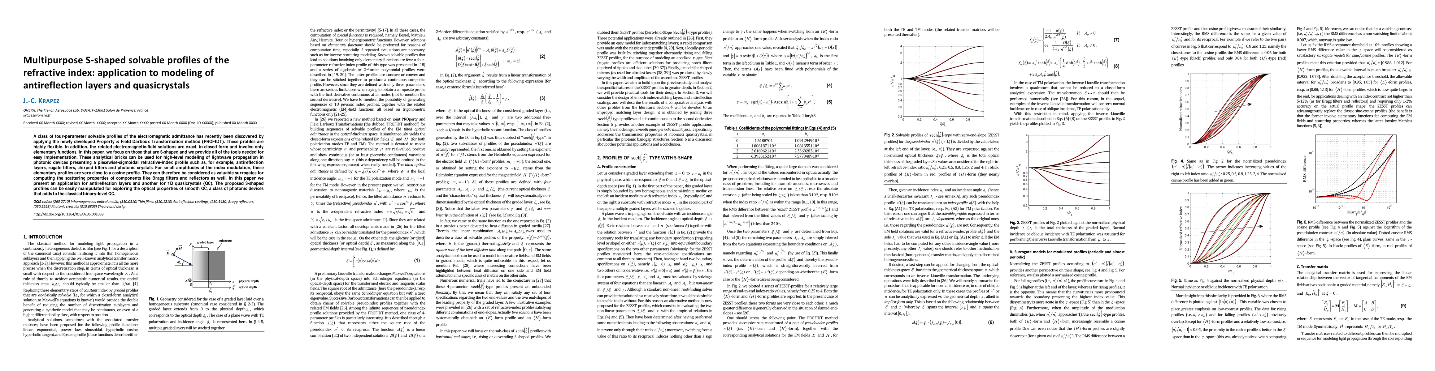 This paper introduces S-shaped, four-parameter solvable profiles of electromagnetic admittance, developed using the Property & Field Darboux Transformation method. These profiles are versatile and can model lightwave propagation in photonic devices like antireflection layers and quasicrystals.