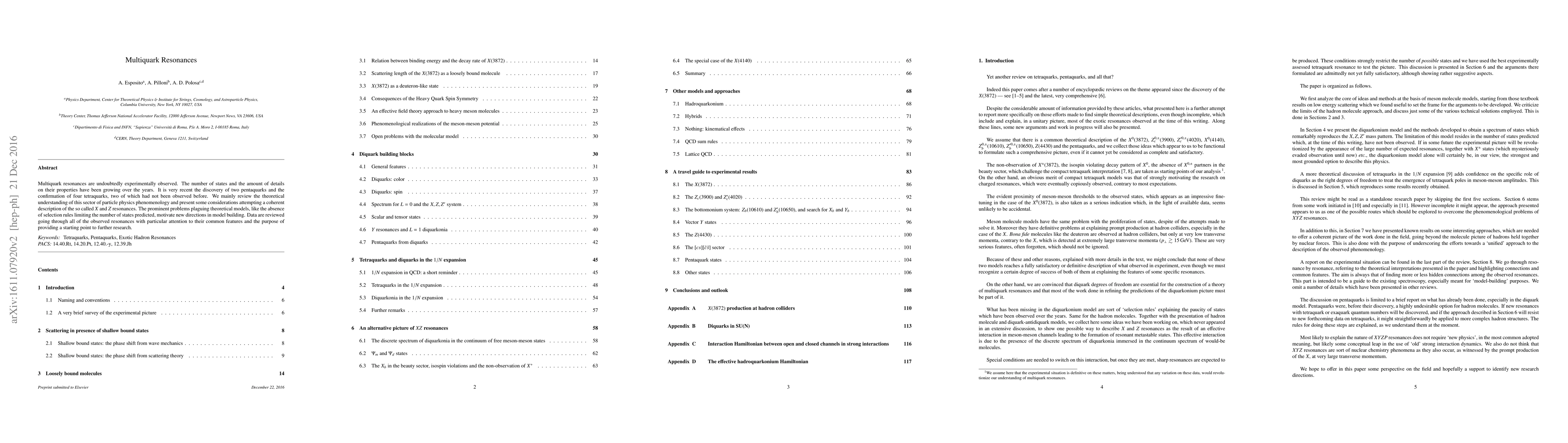 Multiquark resonances are undoubtedly experimentally observed. The number of states and the amount of details on their properties has been growing over the years. It is very recent the discovery of two pentaquarks and the confirmation of four tetraquarks, two of which had not been observed before. We mainly review the theoretical understanding of this sector of particle physics phenomenology and present some considerations attempting a coherent description of the so called X and Z resonances. The prominent problems plaguing theoretical models, like the absence of selection rules limiting the number of states predicted, motivate new directions in model building. Data are reviewed going through all of the observed resonances with particular attention to their common features and the purpose of providing a starting point to further research.