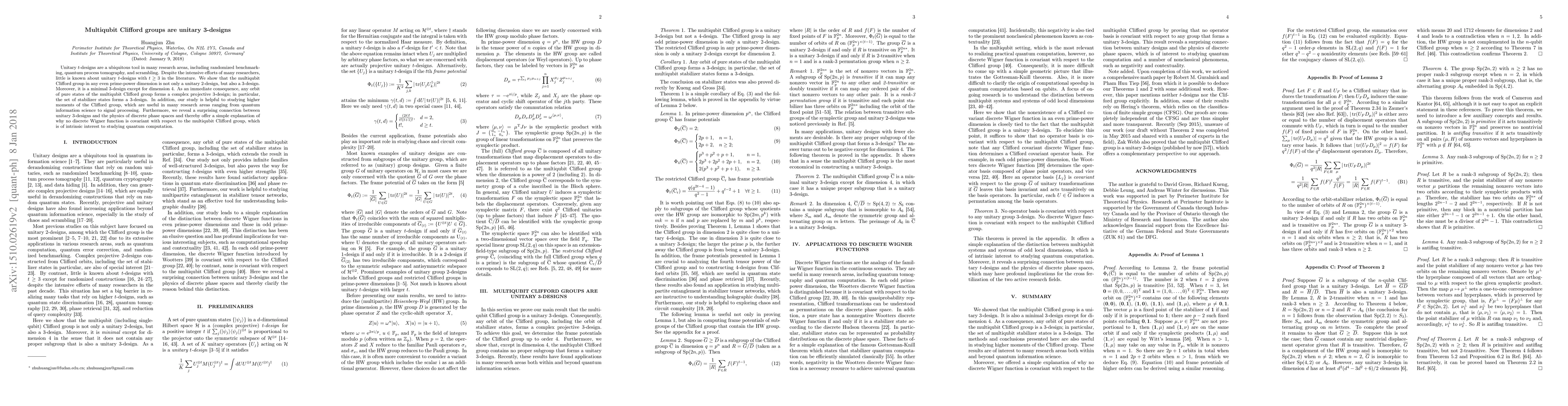 This paper demonstrates that the multiqubit Clifford group serves as a unitary 3-design in even prime-power dimensions, providing insights into higher moments useful for quantum information science and signal processing, and revealing a link between unitary 3-designs and discrete phase spaces. It also explains why no discrete Wigner function is covariant with respect to this group.