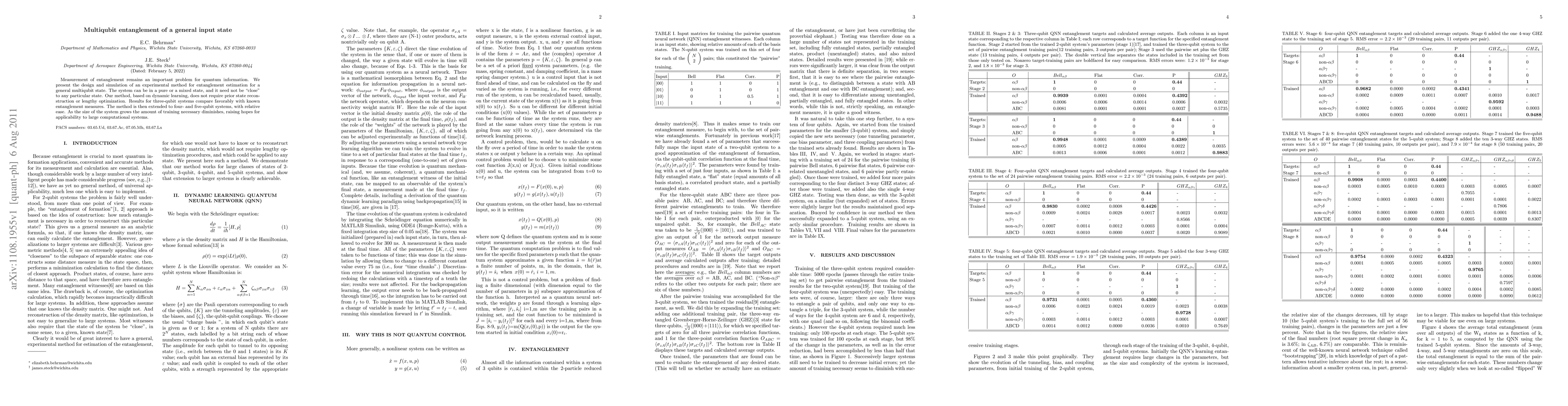 Measurement of entanglement remains an important problem for quantum information. We present the design and simulation of an experimental method for entanglement estimation for a general multiqubit state. The system can be in a pure or a mixed state, and it need not be "close" to any particular state. Our method, based on dynamic learning, does not require prior state reconstruction or lengthy optimization. Results for three-qubit systems compare favorably with known entanglement measures. The method is then extended to four- and five-qubit systems, with relative ease. As the size of the system grows the amount of training necessary diminishes, raising hopes for applicability to large computational systems.