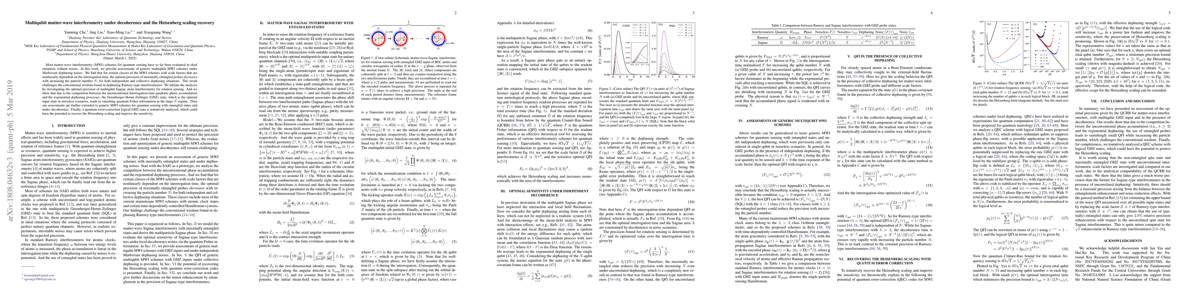 This paper explores multiqubit matter-wave interferometry (MWI) under Markovian decoherence, revealing that the optimal precision of entangled probes decreases with increasing particle number $N$ due to dephasing, challenging conventional scaling expectations. A potential solution involves using quantum error-correction logical GHZ states to recover Heisenberg scaling and enhance sensitivity.