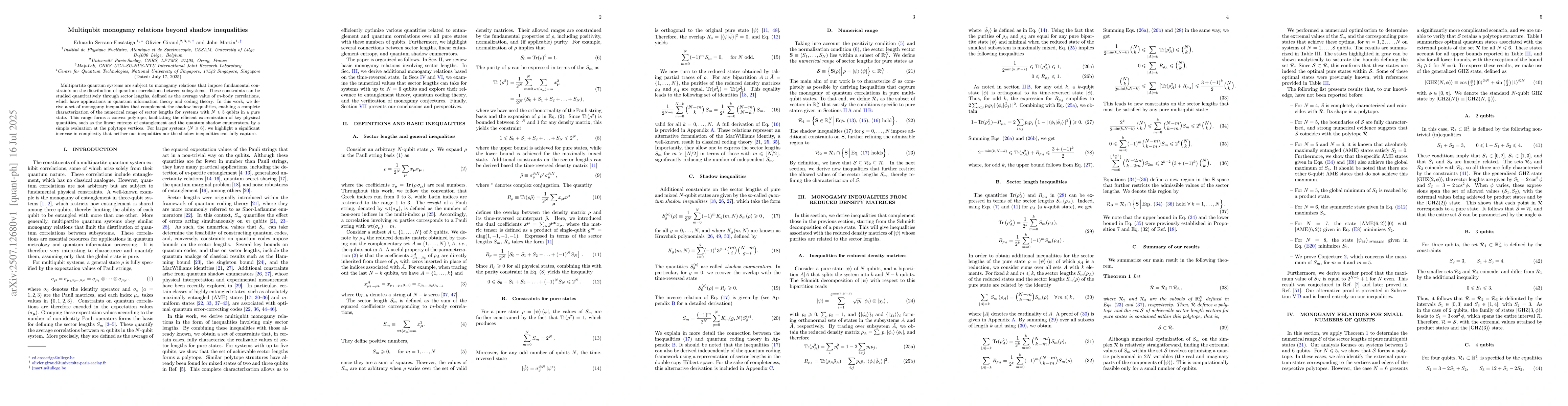 Multipartite quantum systems are subject to monogamy relations that impose fundamental constraints on the distribution of quantum correlations between subsystems. These constraints can be studied quantitatively through sector lengths, defined as the average value of $m$-body correlations, which have applications in quantum information theory and coding theory. In this work, we derive a set of monogamy inequalities that complement the shadow inequalities, enabling a complete characterization of the numerical range of sector lengths for systems with $N\leq 5$ qubits in a pure state. This range forms a convex polytope, facilitating the efficient extremization of key physical quantities, such as the linear entropy of entanglement and the quantum shadow enumerators, by a simple evaluation at the polytope vertices. For larger systems ($N\geq 6$), we highlight a significant increase in complexity that neither our inequalities nor the shadow inequalities can fully capture.