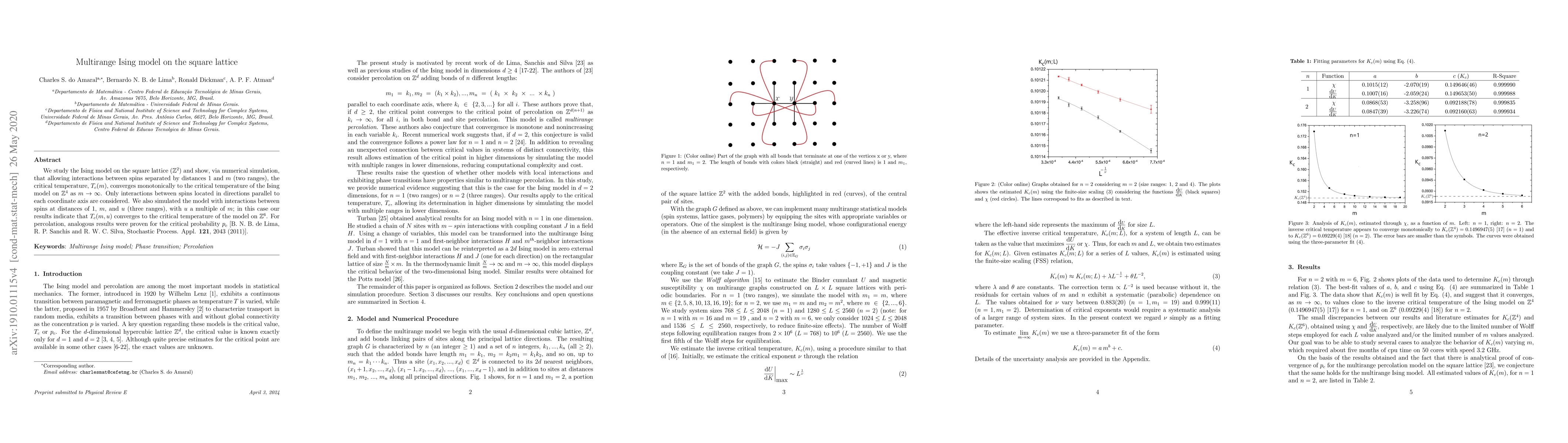 Researchers studied the Ising model on a 2D lattice with interactions between spins separated by distances of 1 and m, finding that the critical temperature converges to that of the 4D model as m increases. This suggests that extending interactions beyond 1-range may lead to behavior similar to higher-dimensional models.