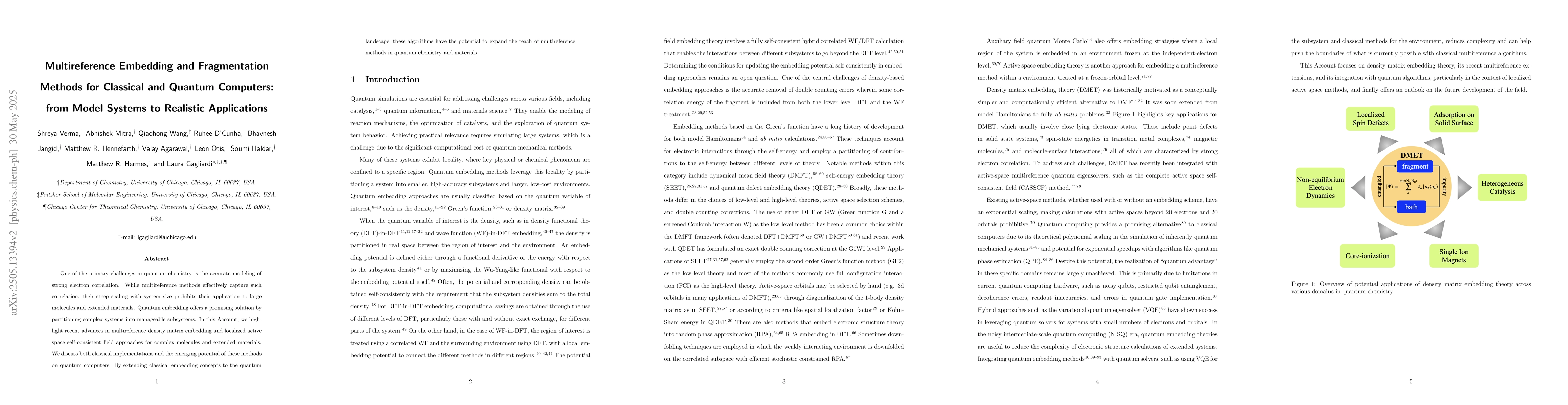 The paper reviews recent advances in multireference density matrix embedding and localized active space self-consistent field approaches, discussing both classical implementations and their potential on quantum computers.