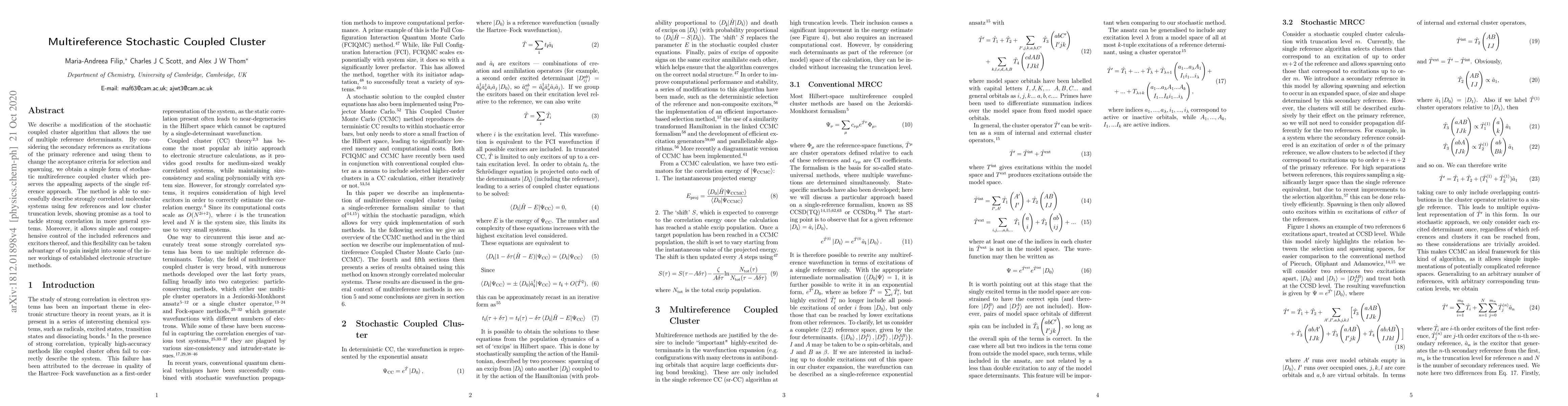 This paper introduces a modified stochastic coupled cluster method that incorporates multiple reference determinants, enabling the description of strongly correlated molecular systems with fewer references and lower truncation levels. The method offers flexibility in controlling included references and provides insights into the mechanisms of established electronic structure methods.